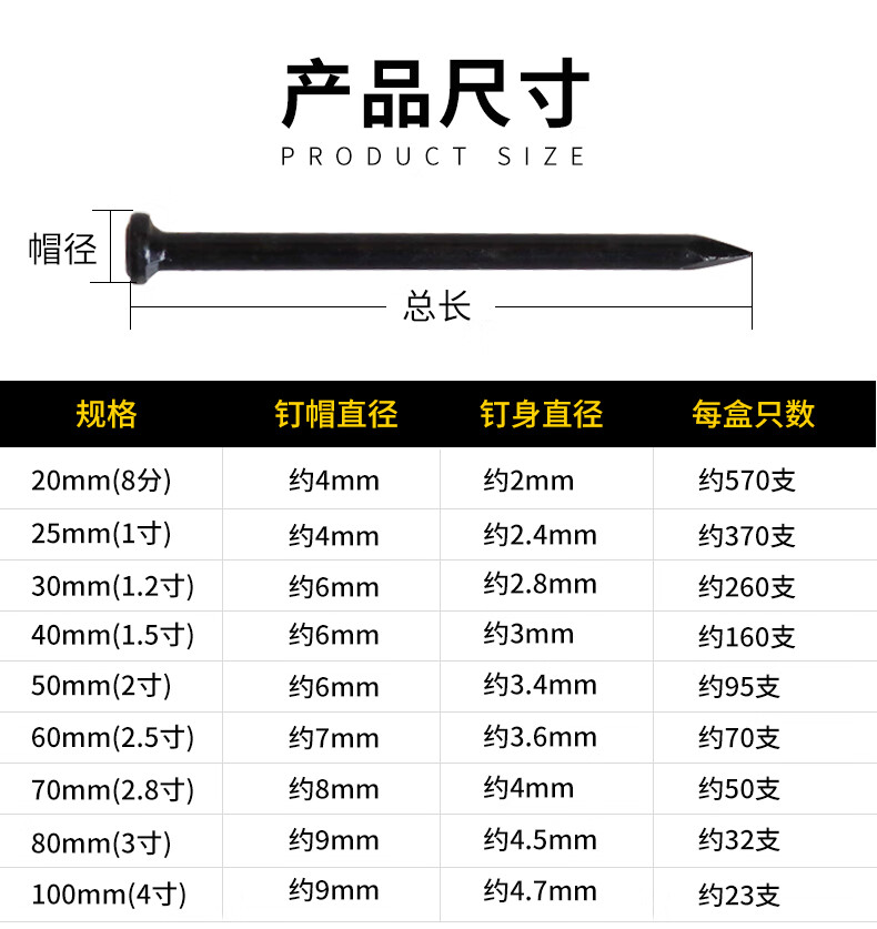 Huxin Special Cement Nails Household Nails Steel Nails Wall Nails Round Nails Carpentry Nails Concrete Picture Frame Hanging Nails White Zinc Cement Nail Set 9 Specifications