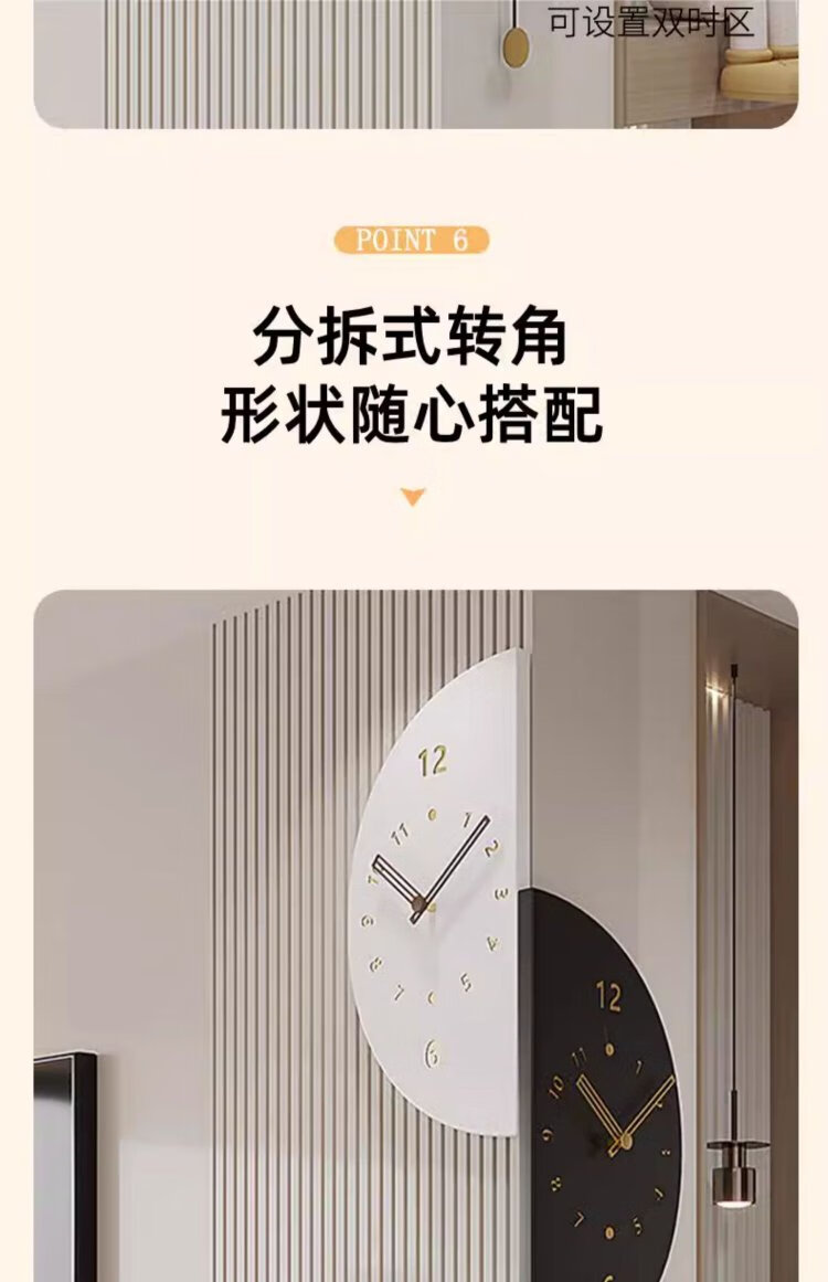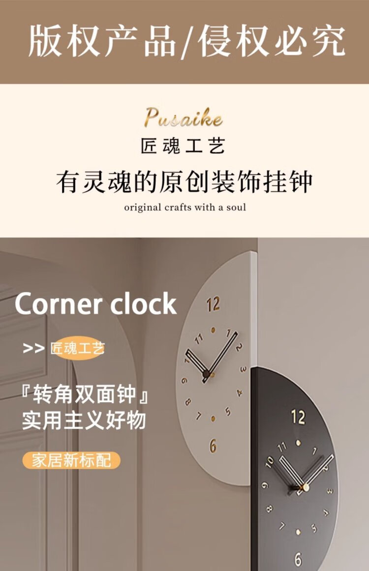 Psyche 2025 New Modern Simple Living Room Corner Double-Sided Wall Clock Home Silent Corner Clock Restaurant Clock Wall Wall Large + Voice Control Lamp + Swing Qiancheng Mobai