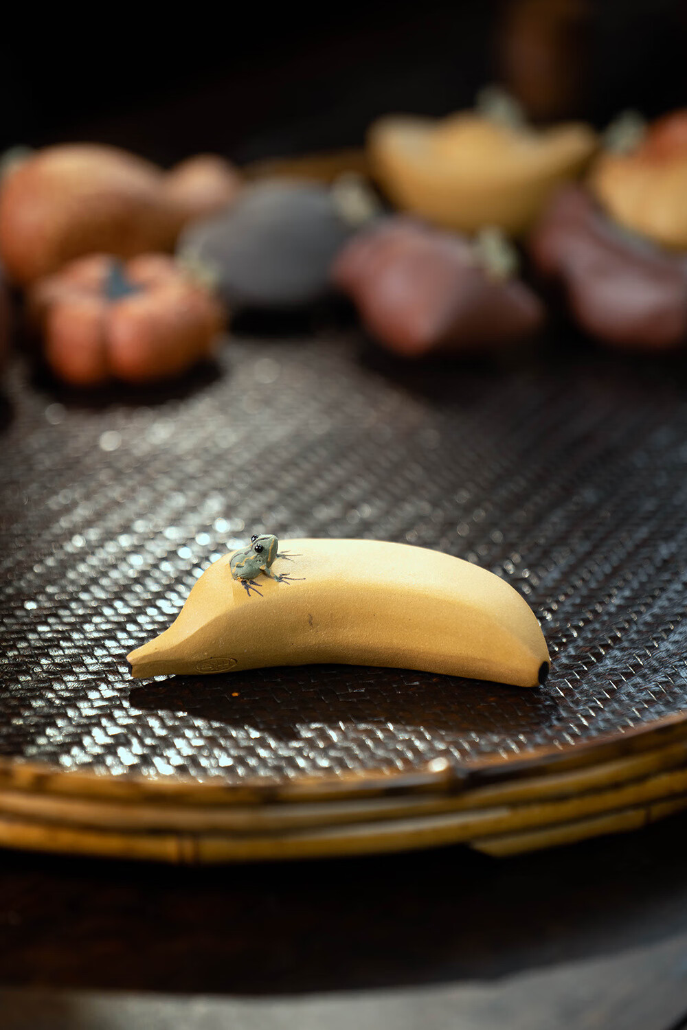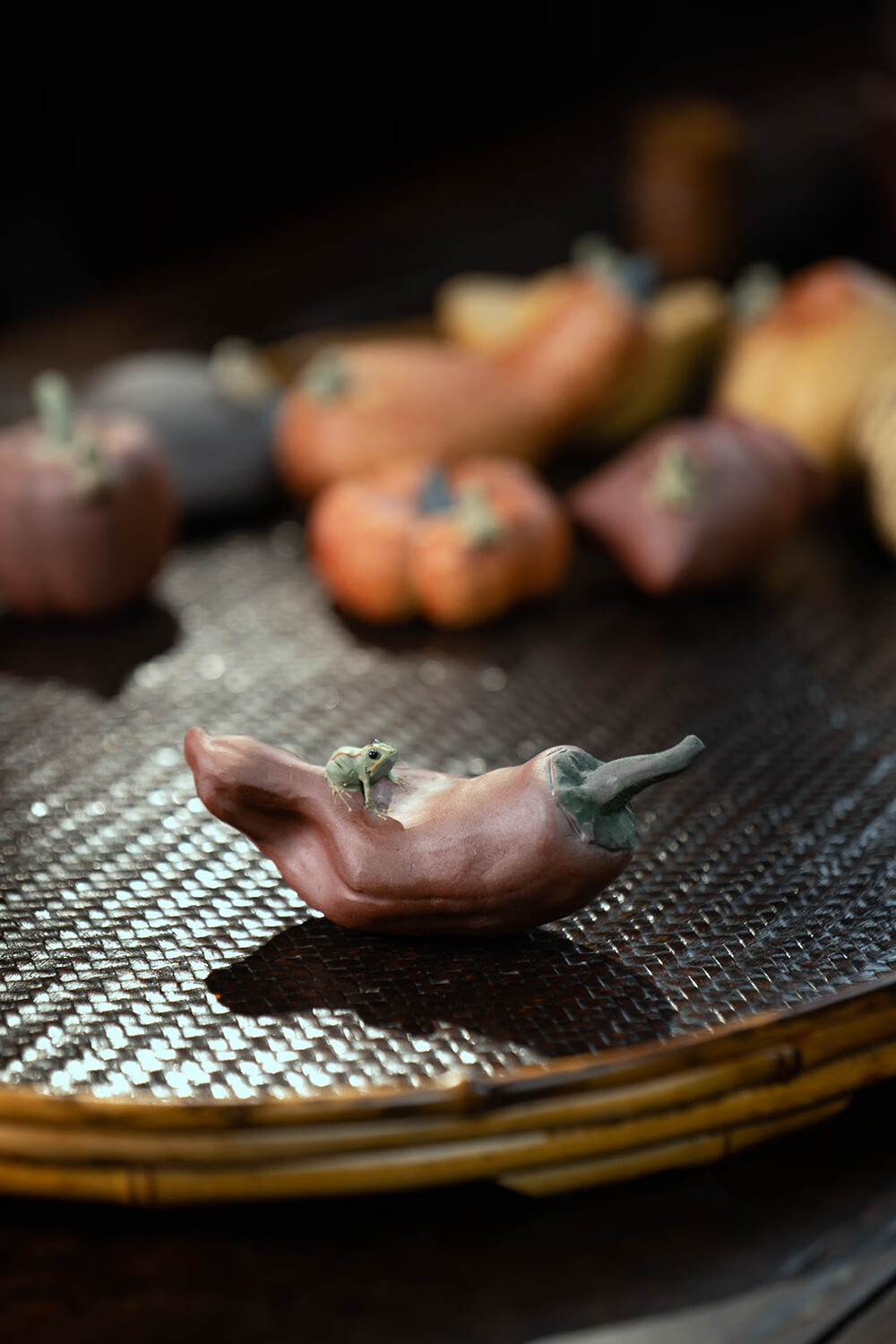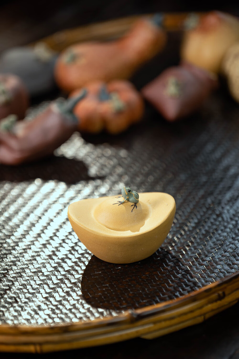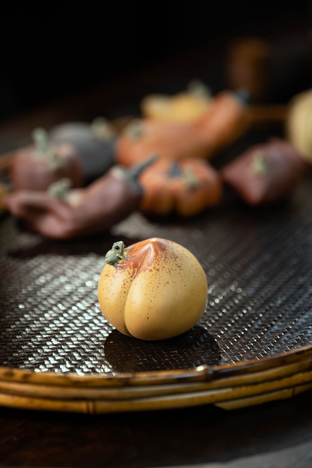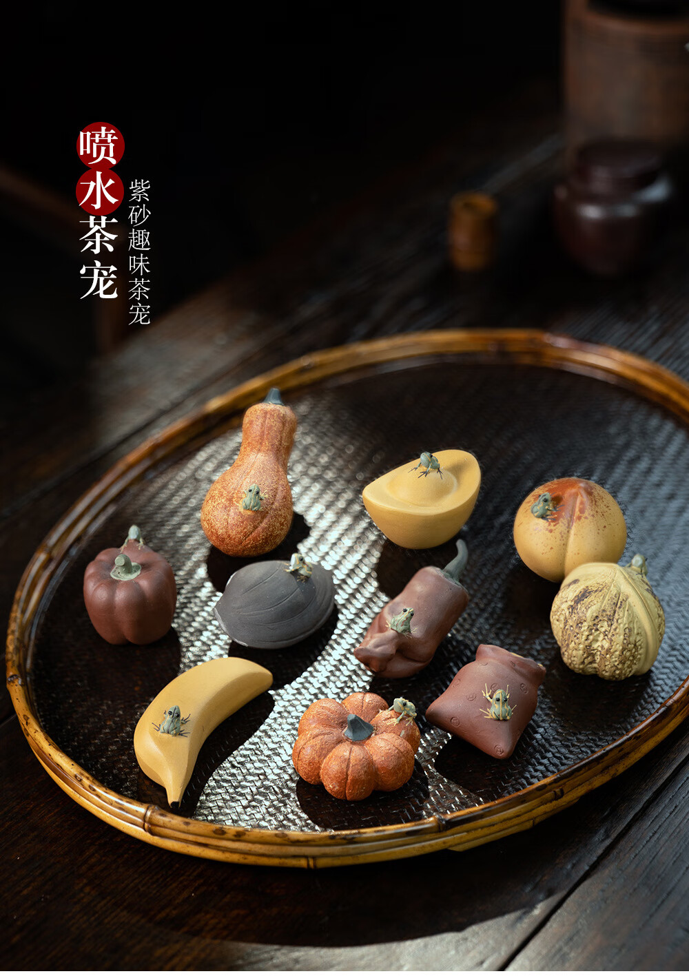 Juechu Light Luxury Gift Box, Purple Clay Tea Pet, Handmade Water Spraying Frog, Pumpkin Ornaments, Peach Banana Tea Set, Can Be Raised and Gifted as Pictured