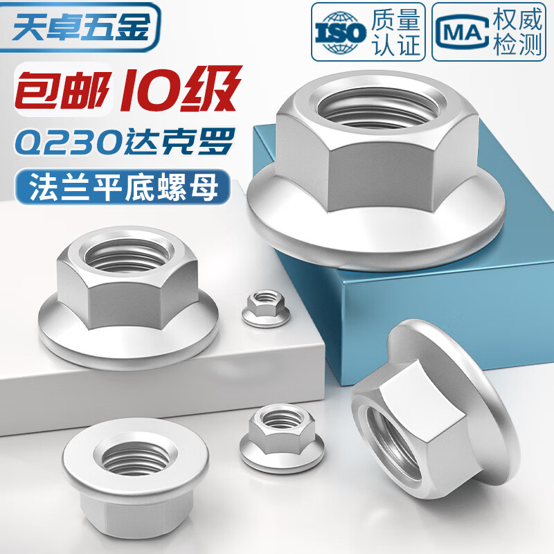 Tianzhuo Hardware Grade 10 Q230 Dacromet flat bottom hexagonal nut flange nut M6M8M10M12M14M16 GB6177 M10-5 only