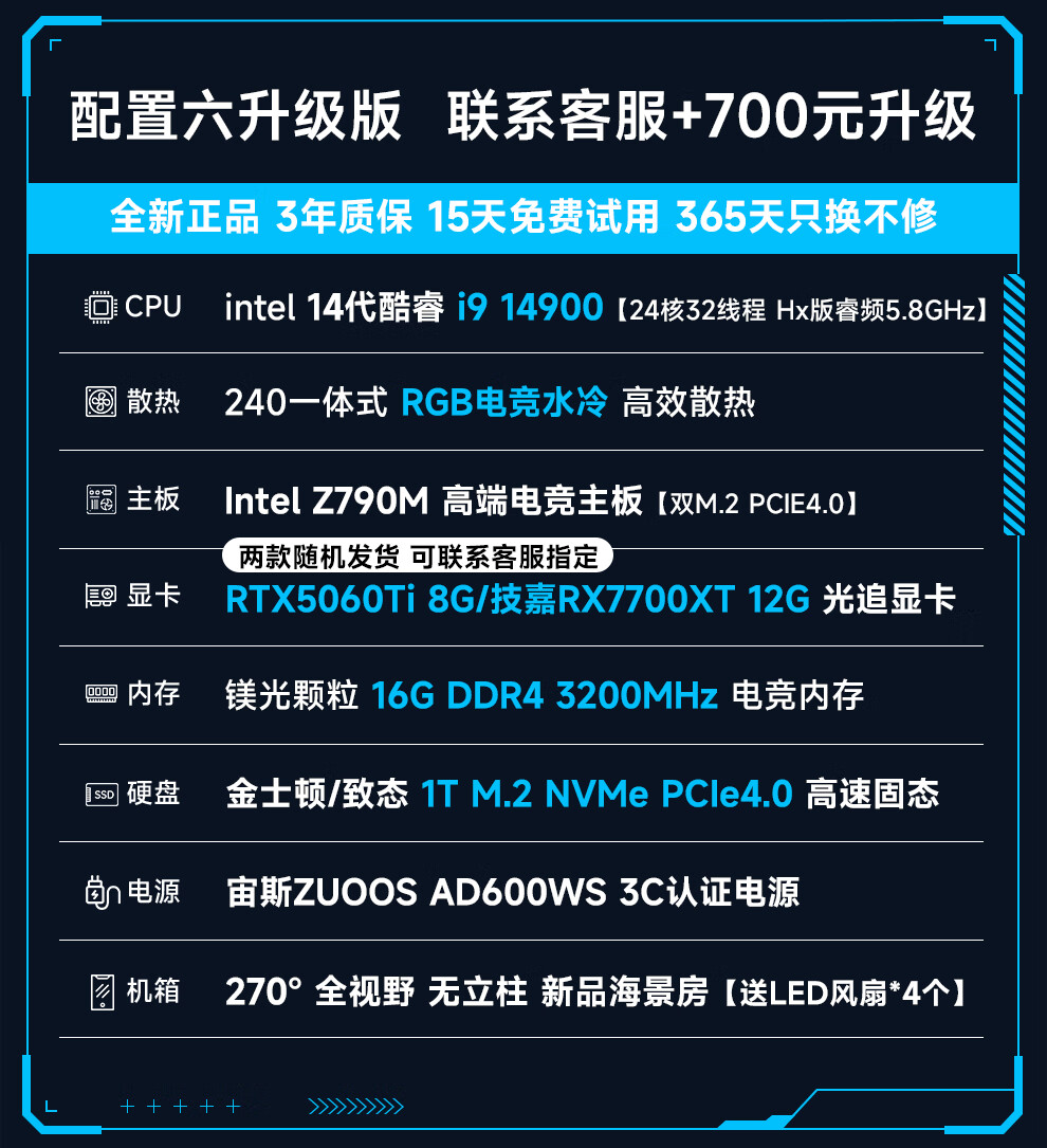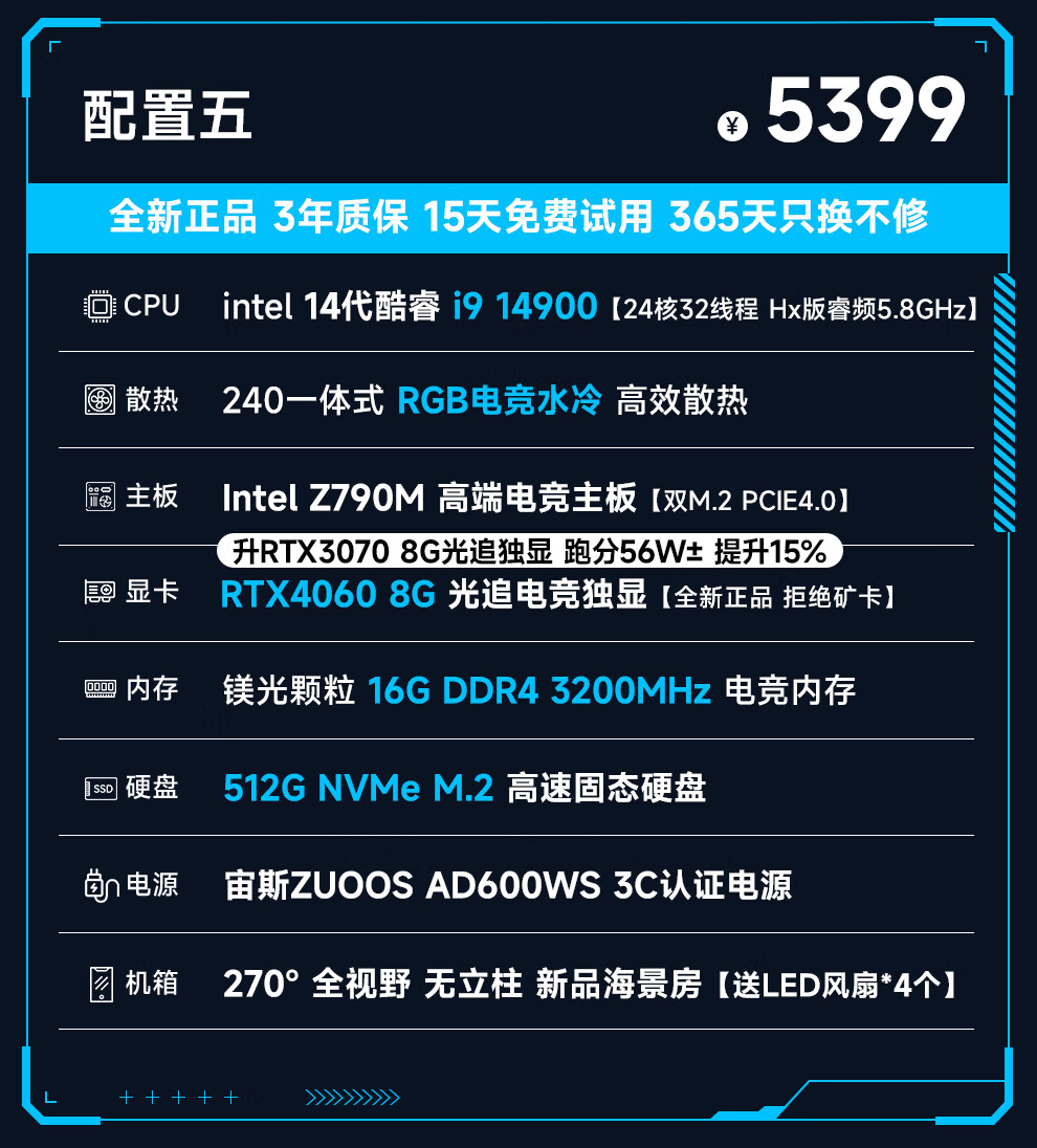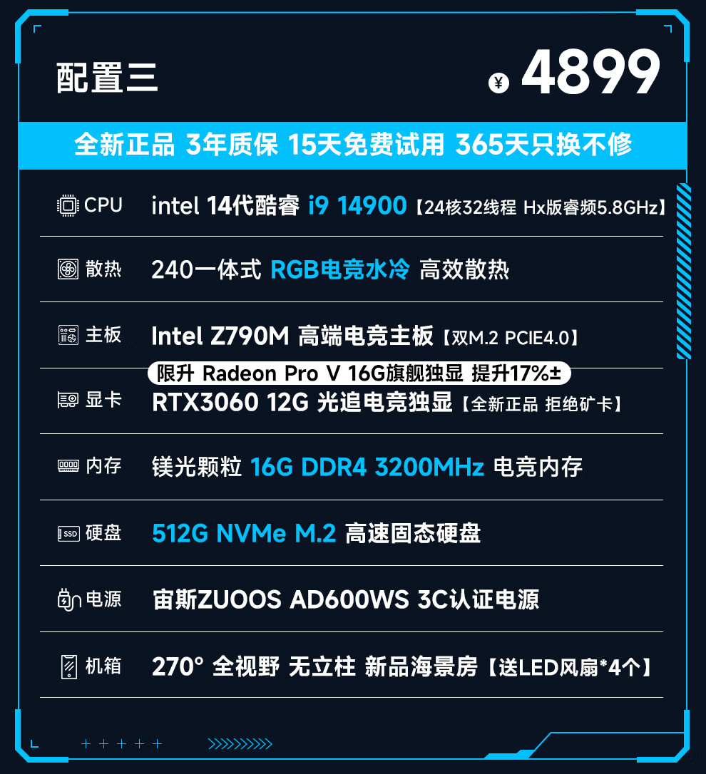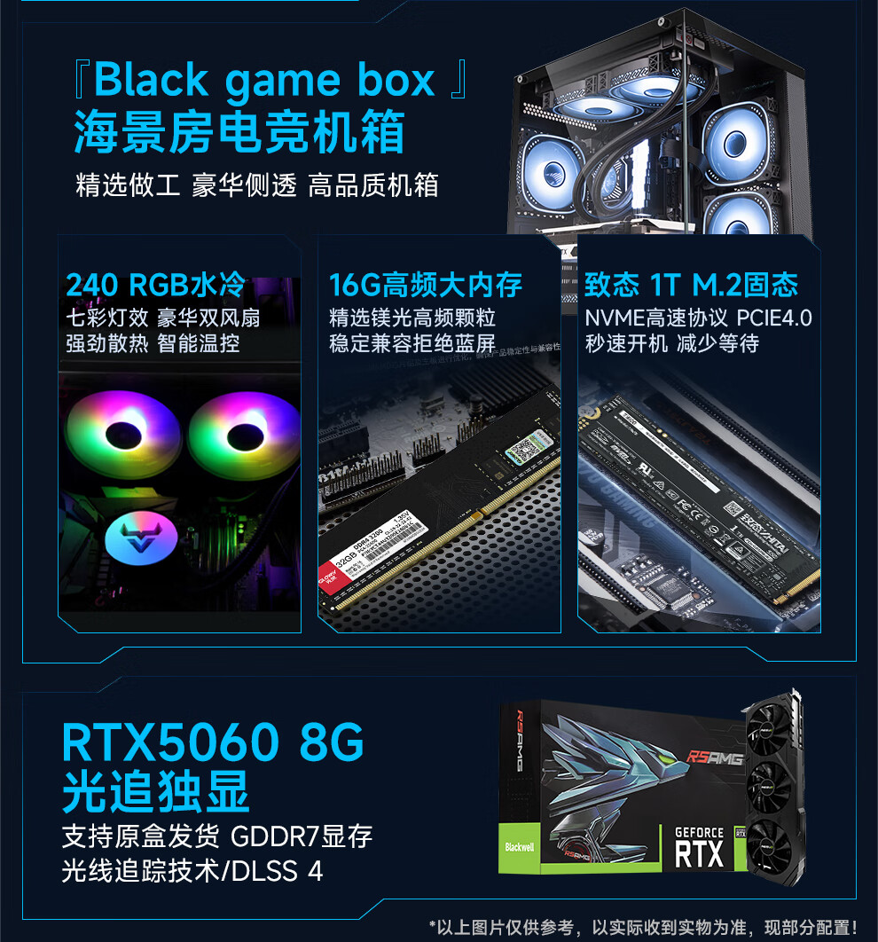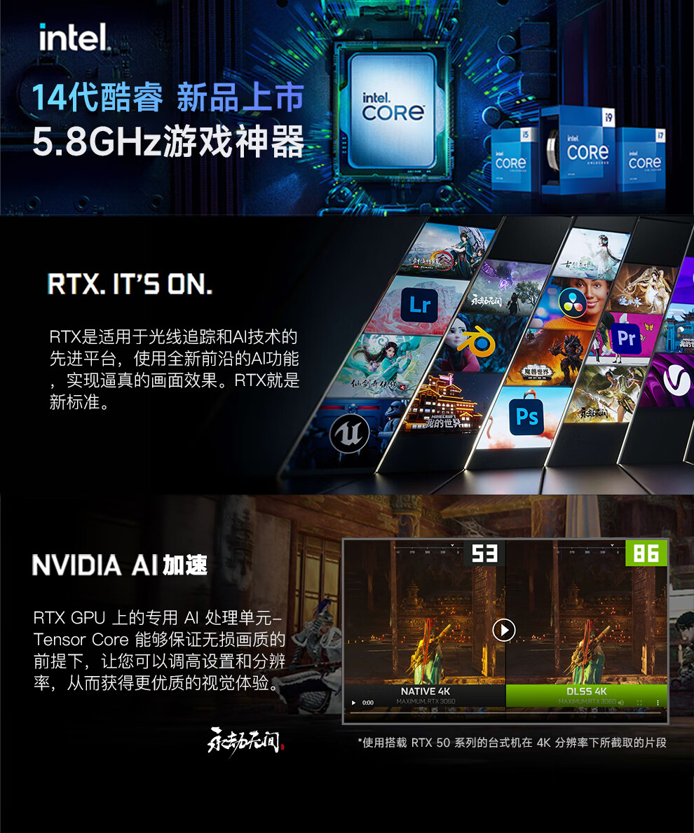Reso Intel 14th generation Core i9 14900/RTX4060/5060Ti/HX enhanced version water-cooled game live rendering enhanced version DIY assembly computer desktop host 14th generation Core i9丨16G+512G丨3050 6G