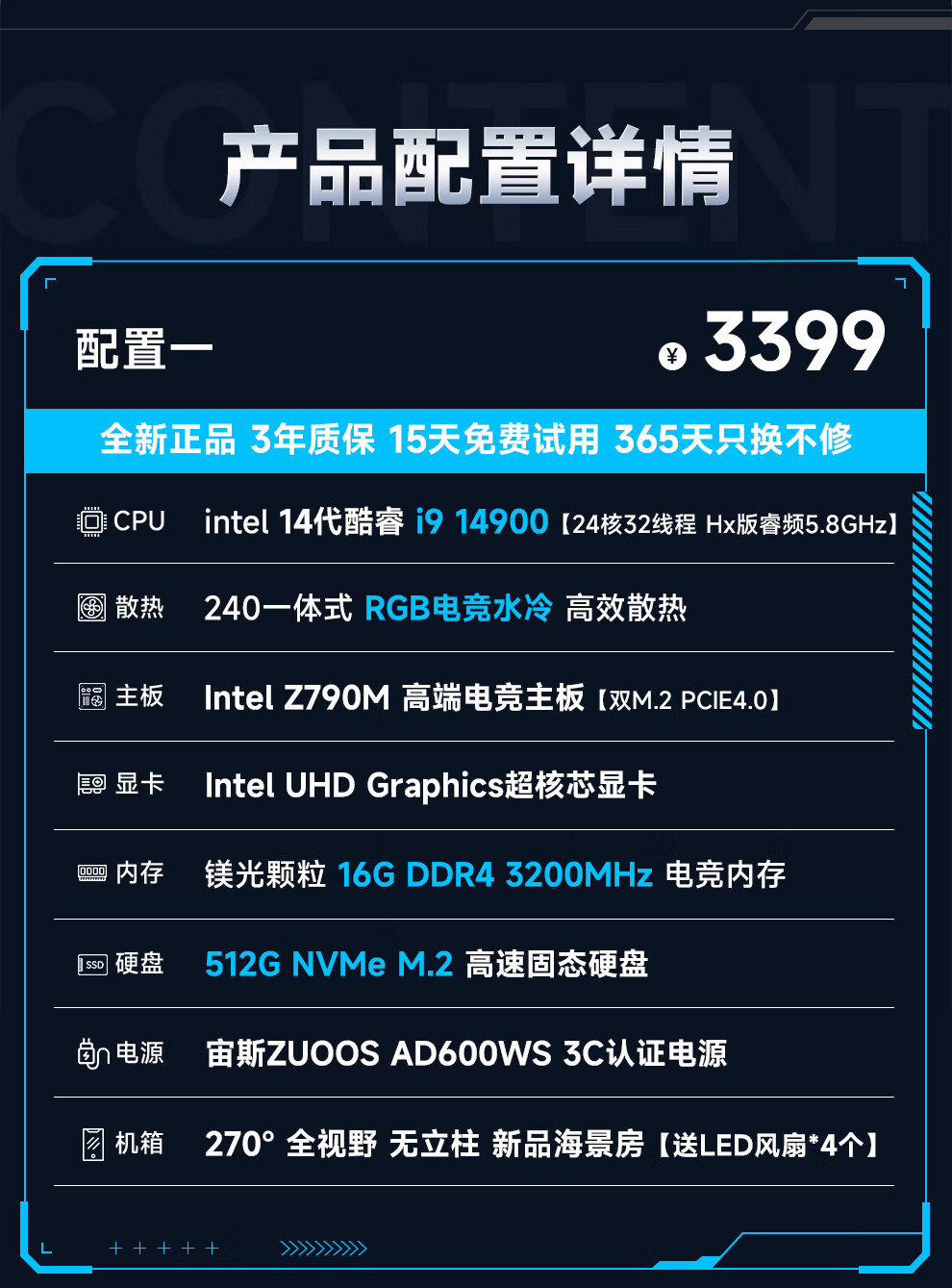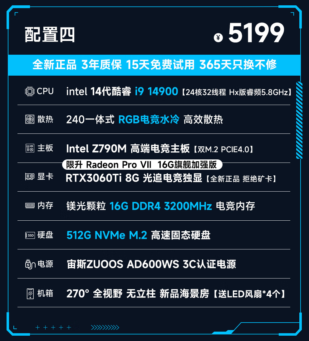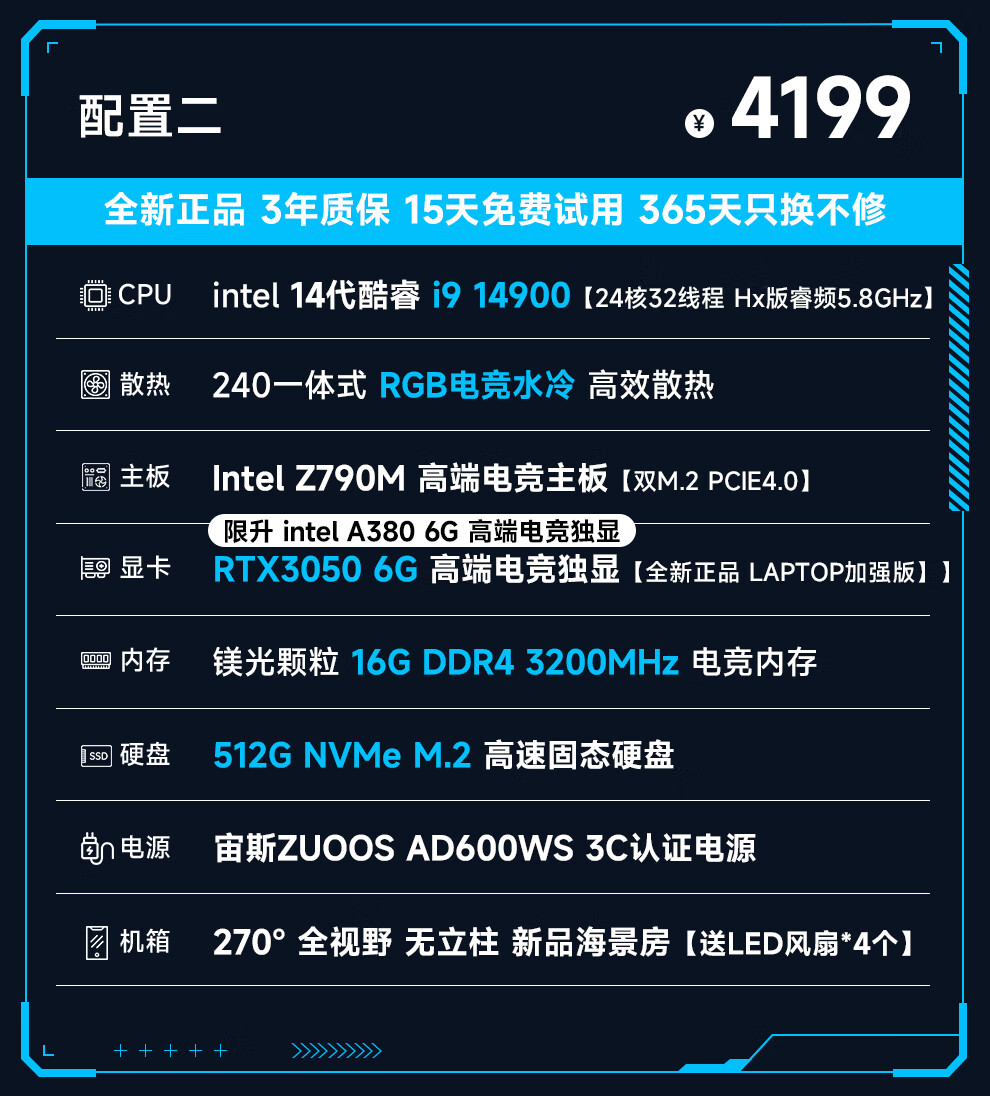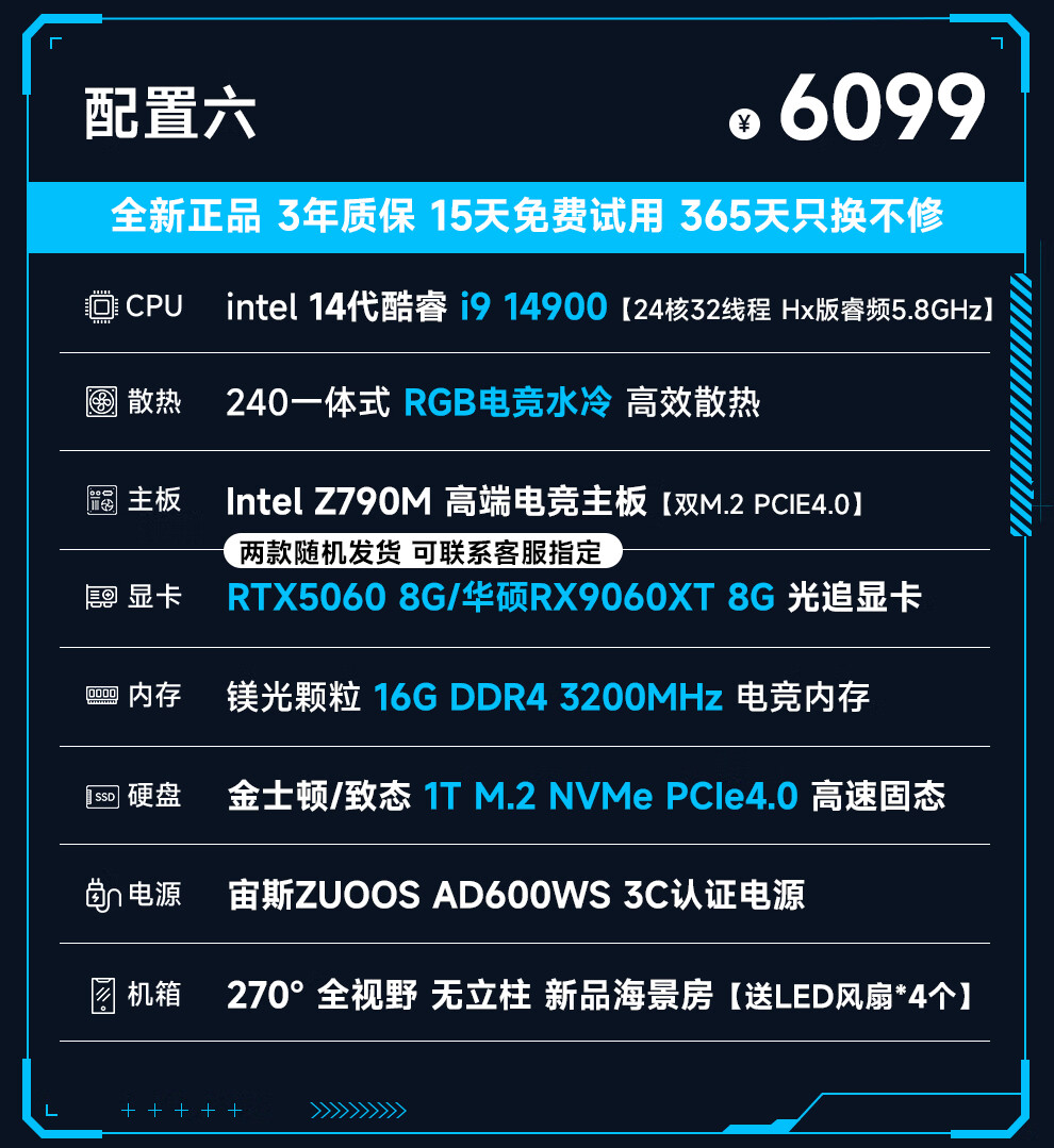 Reso Intel 14th generation Core i9 14900/RTX4060/5060Ti/HX enhanced version water-cooled game live rendering enhanced version DIY assembly computer desktop host 14th generation Core i9丨16G+512G丨3050 6G