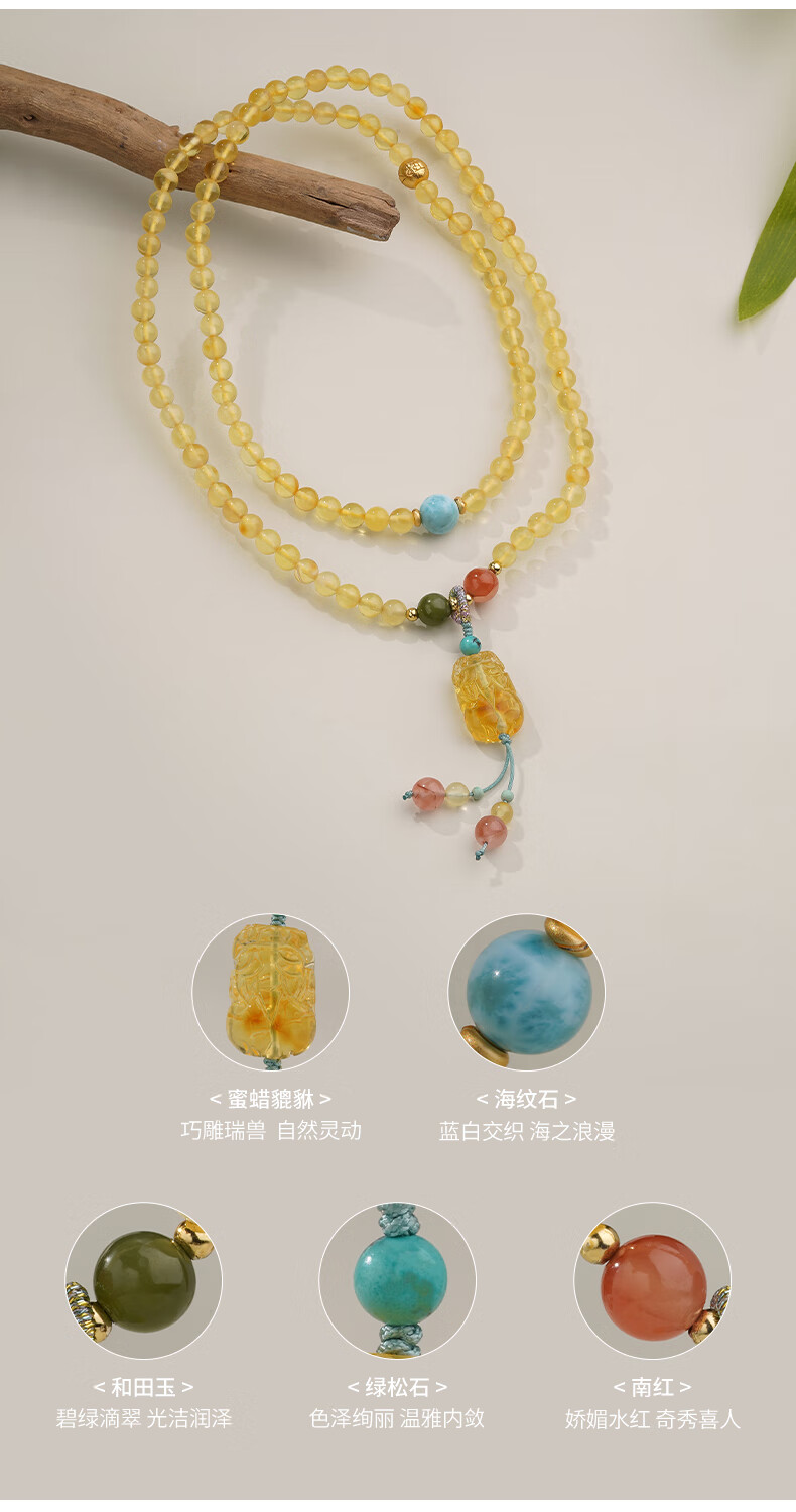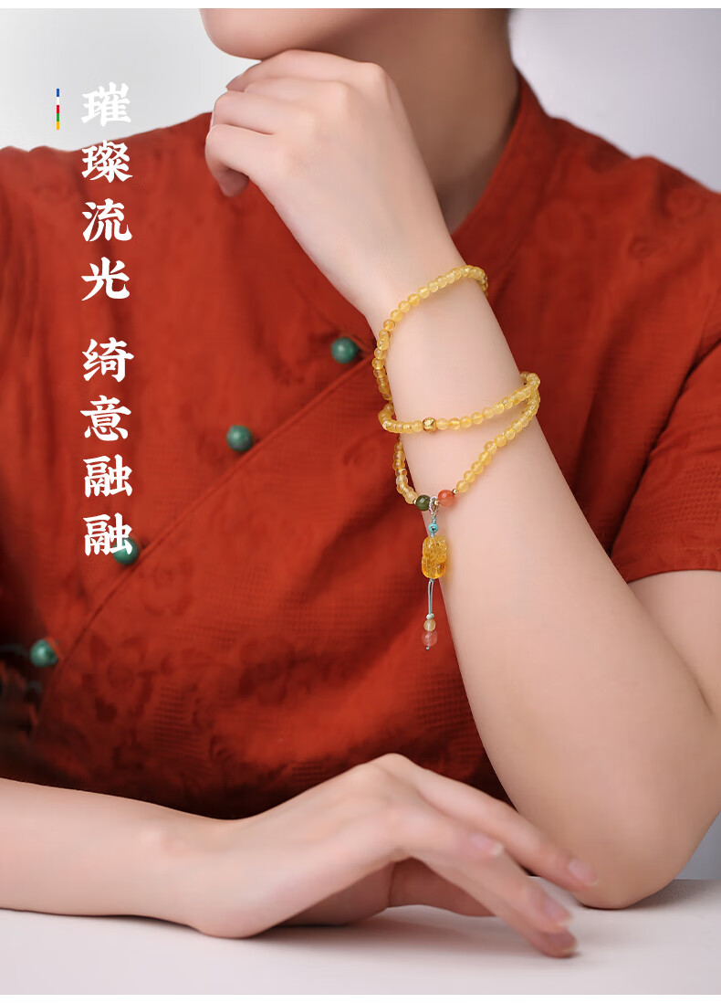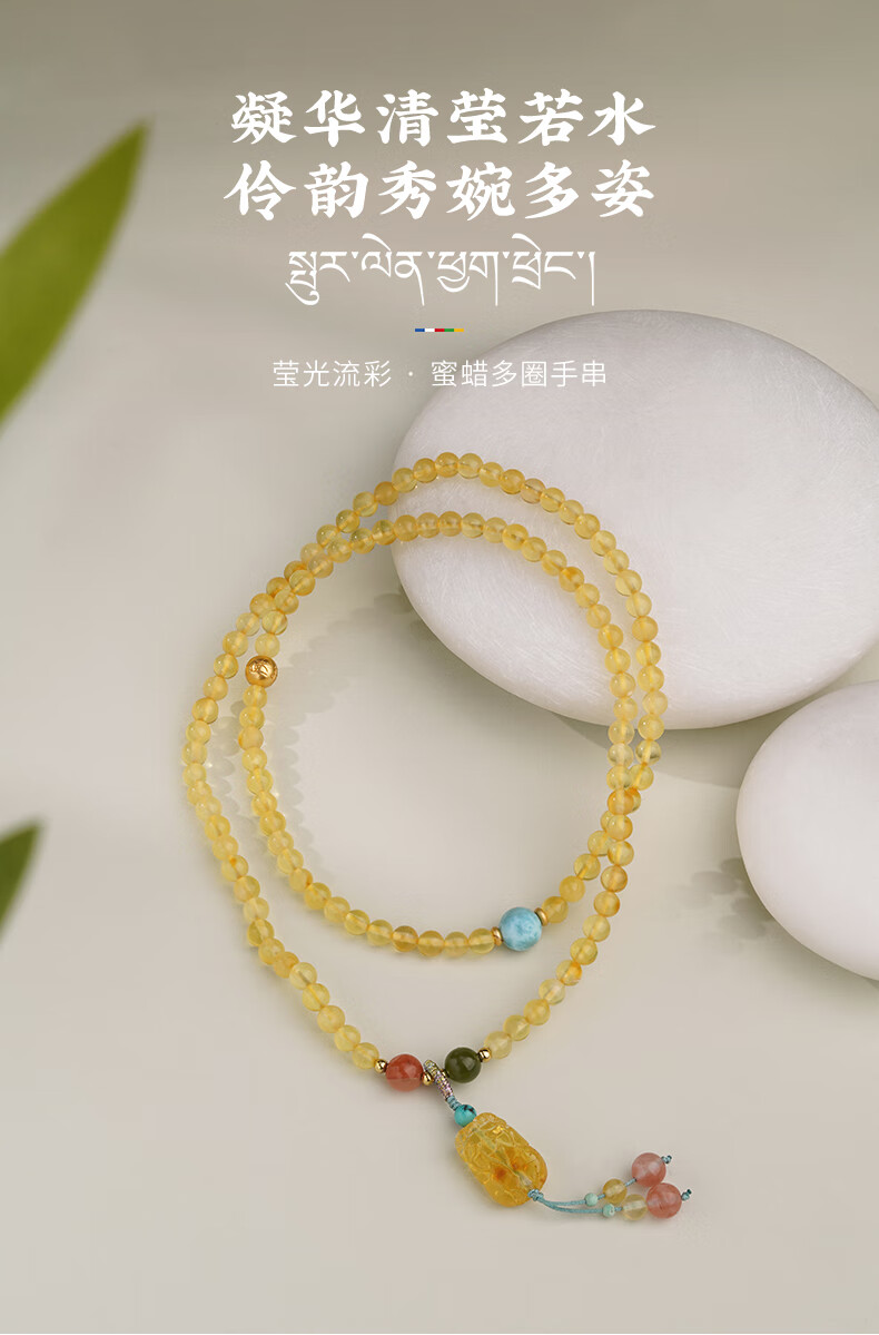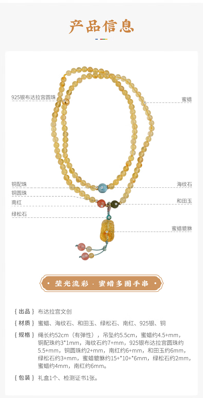Potala Palace Pixiu Beeswax Multi-circle Bracelet Duobao South Red Sea Pattern Stone Bracelet Simple Personalized Ball Bead Chain Birthday Gift Beeswax Bracelet