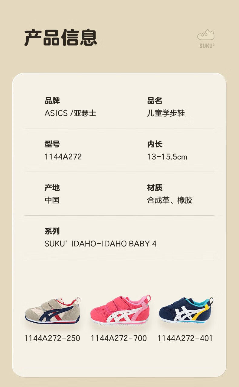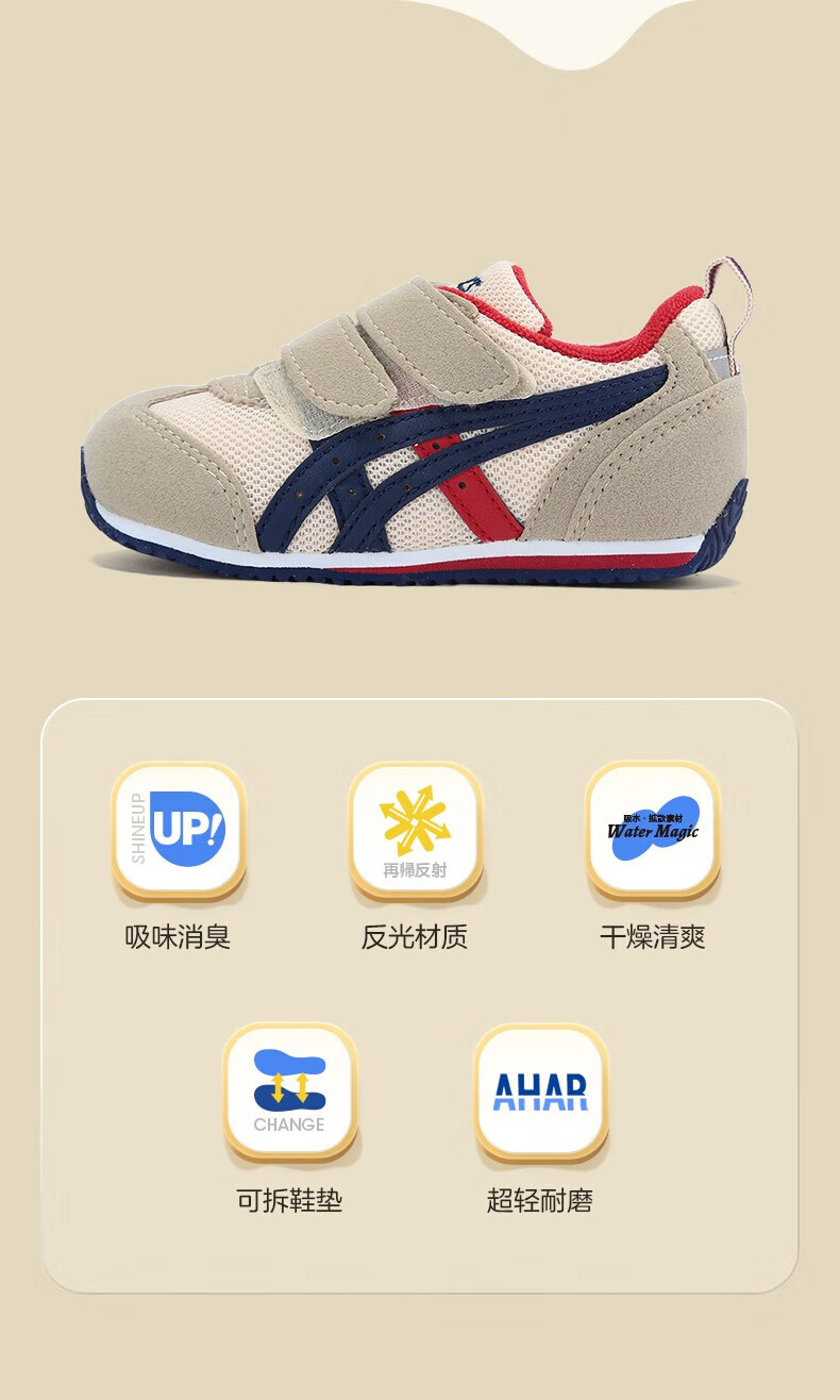 Asics functional shoes, children's shoes, children's shoes, baby toddler shoes, mesh soft sole Velcro breathable shoes 250 potato color, best-selling model 25, inner length 15.5cm, foot length 14.5cm
