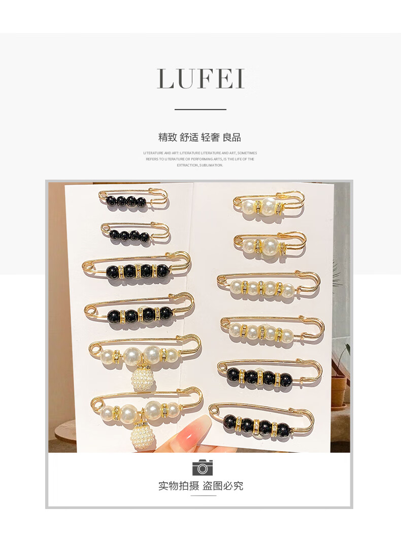 Dai Yan brooch neckline anti-exposure pin dress waist fixing artifact trousers waist pin to small pin accessories black and white pearl brooch trouser accessories 8-piece set