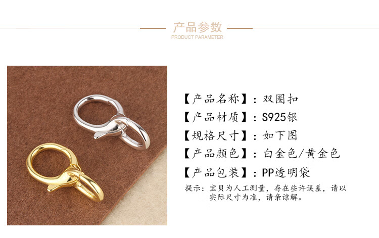 Fat Donglai's same platinum-plated necklace button connector S925 silver pearl button head spring buckle double-circle buckle connecting buckle yellow l gold 1723 TH123 double-circle buckle