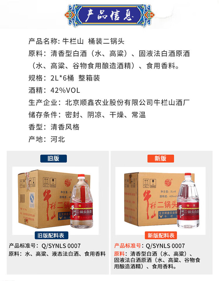 Niulanshan Beijing Erguotou Medicinal Wine Large Barrel Fragrance Style Liquor Barrel Ration Wine 42 Degrees 2L 6 Barrels Full Box