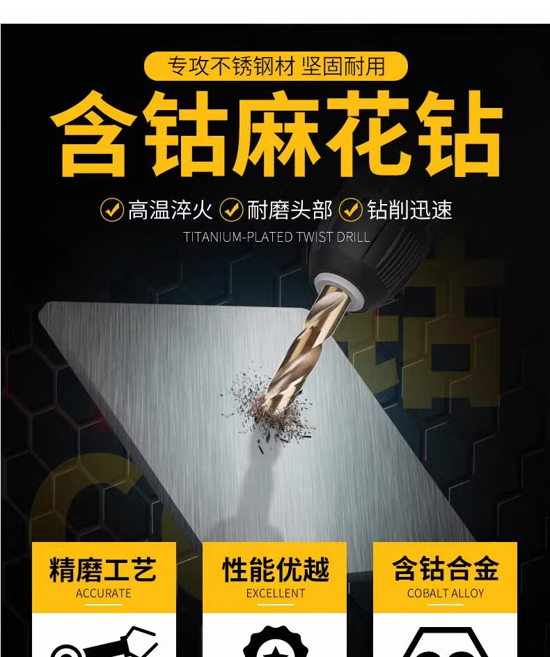 Tianzhuo Hardware Twist Drill Bit Straight Shank Cobalt-containing Stainless Steel Special Punching Super Hard Turn Metal Iron Aluminum Alloy Drill Bit 1-20mm 14.5mm 1 piece