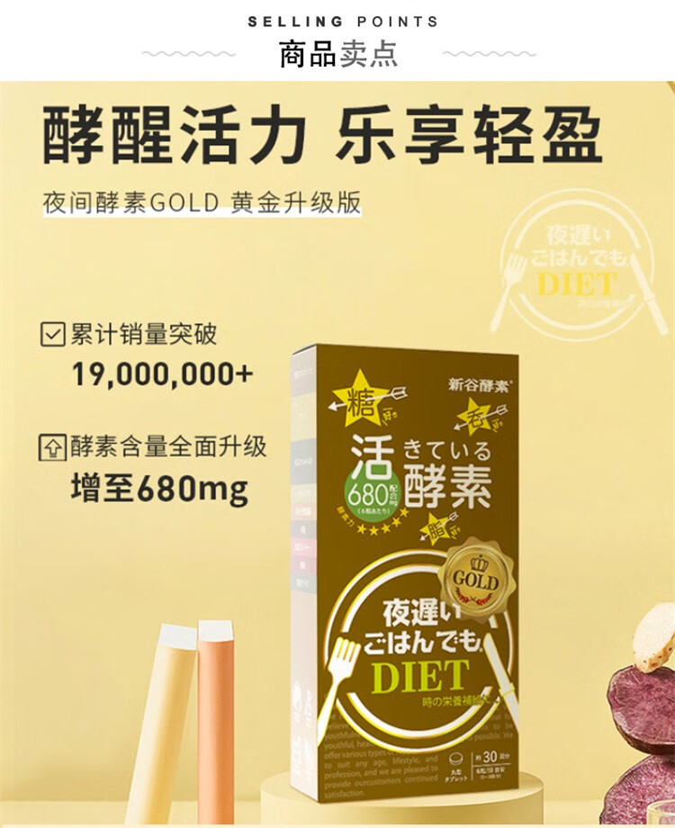 日本新谷酵素加强版黄金版夜间酵素水果果蔬调理夜间酵素王23年升级版 控热热控片好用 维持身材 黄金升级版180粒*1盒