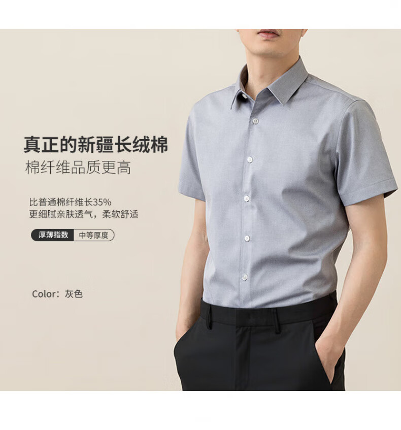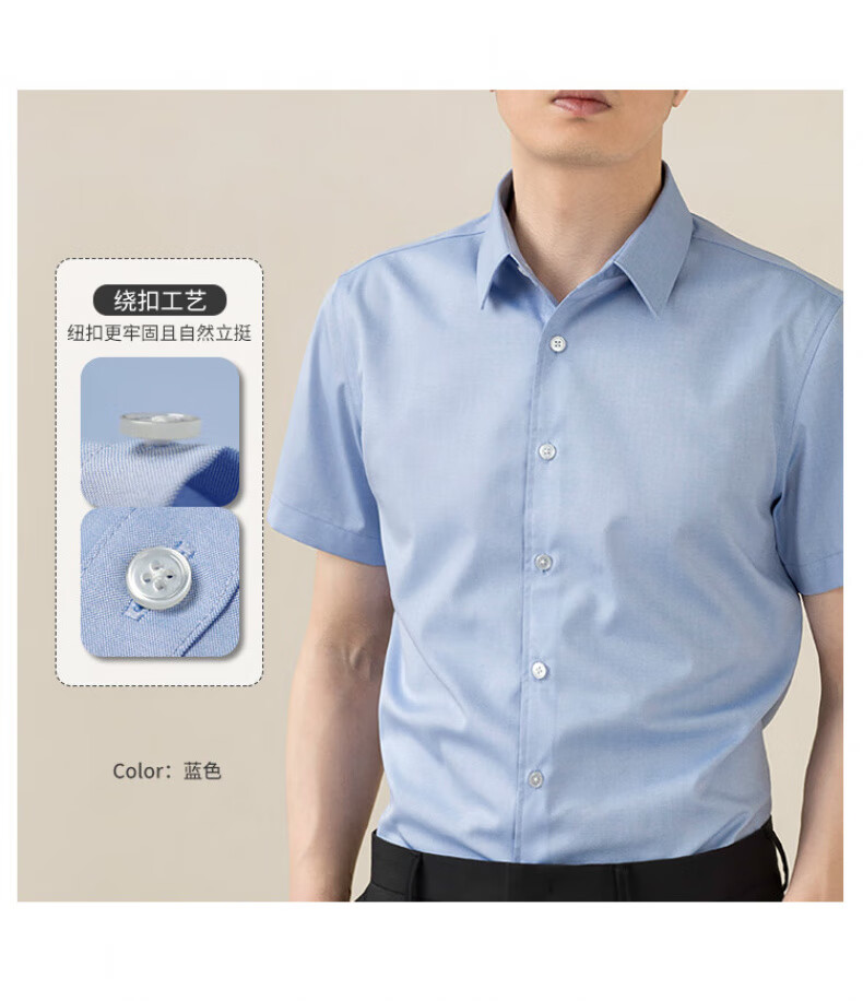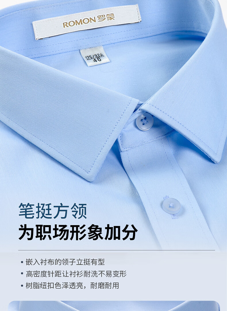罗蒙(ROMON)可机洗纯棉DP成衣免烫衬衫男士长袖春秋商务休闲职业装抗皱白衬衣 长柚-浅蓝色(DP纯棉) 41 码(175/96A)
