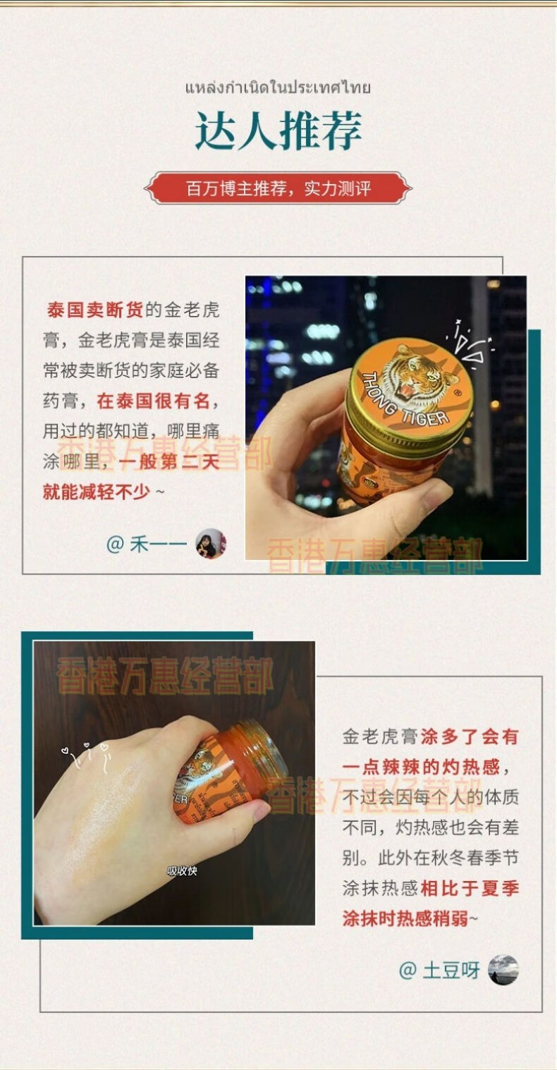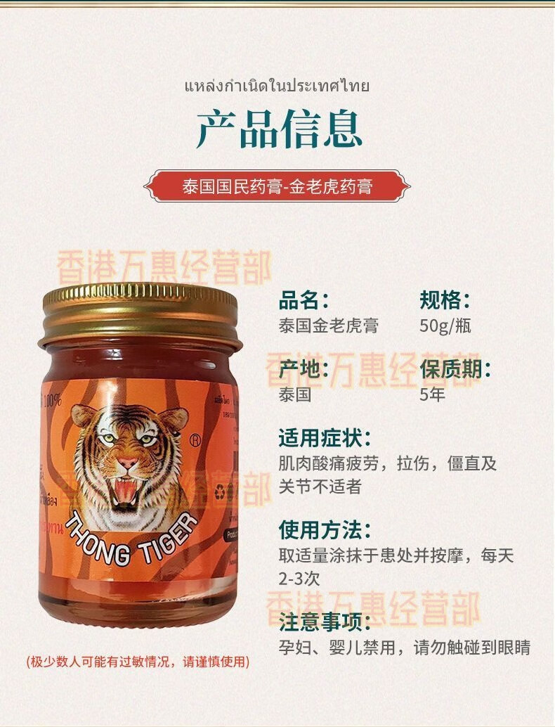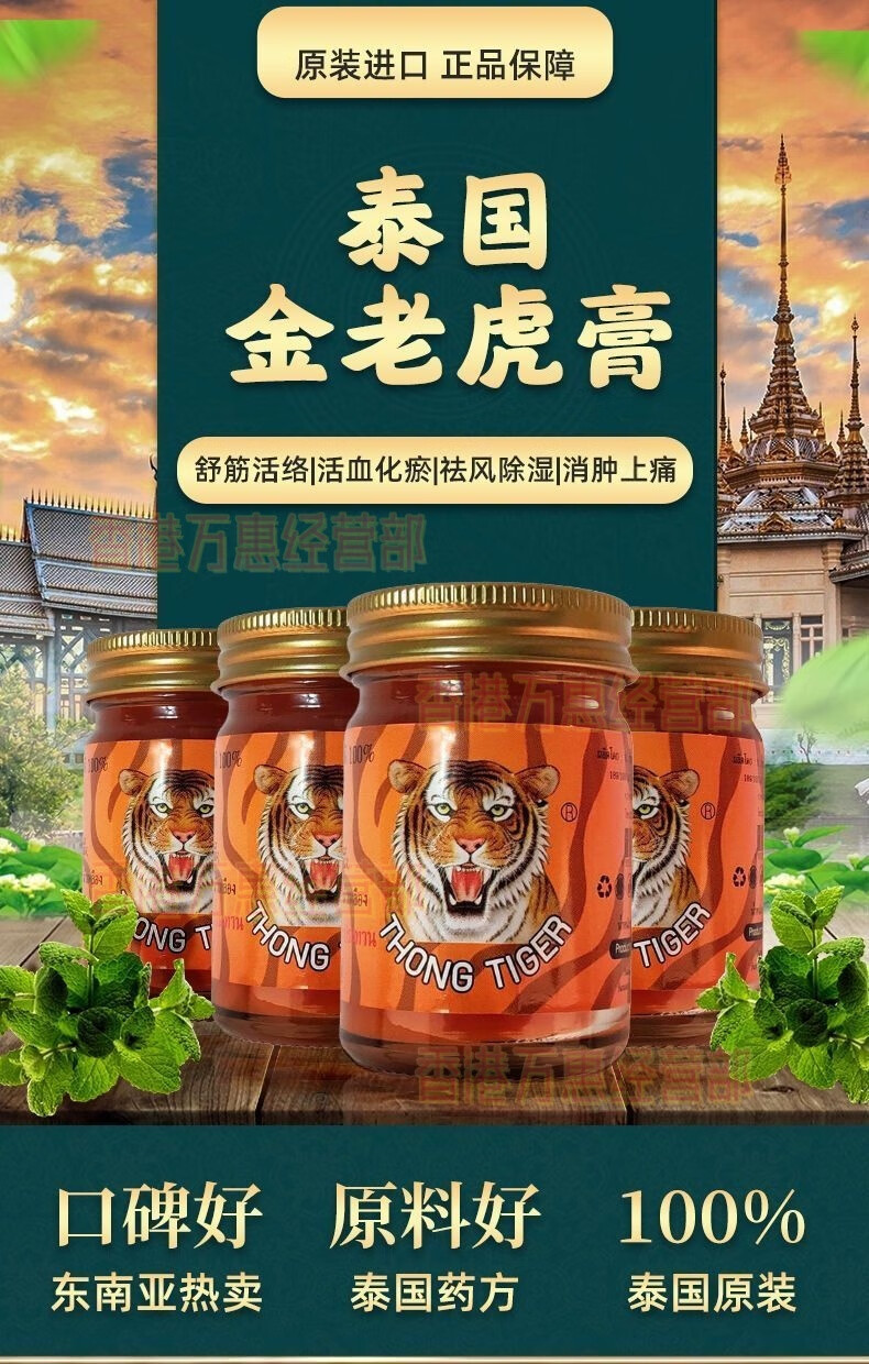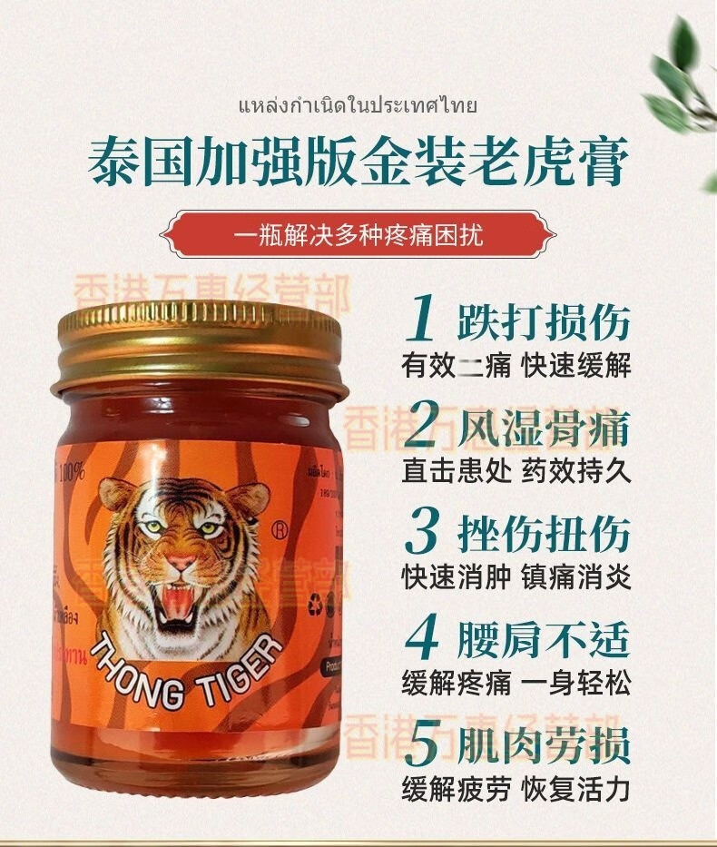 Golden Tiger Thai Golden Tiger Cream thongTIGER original imported authentic Tiger Massage Cream relieves joint pain and pain. 4 bottles in a box 85% purchase Thai Tiger Cream 50g