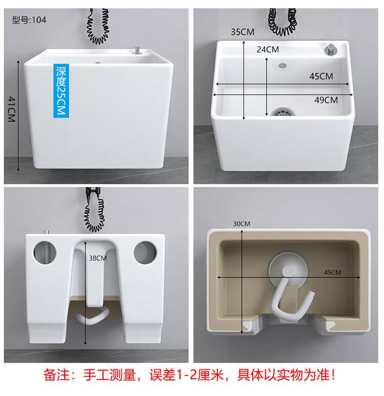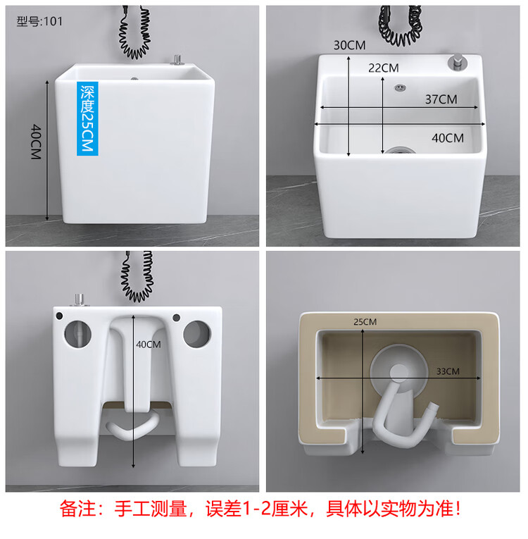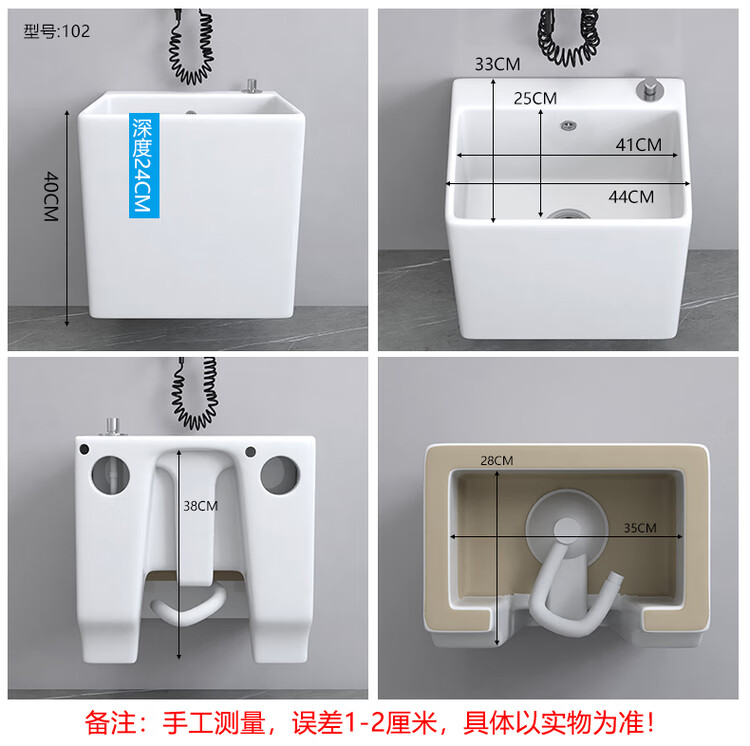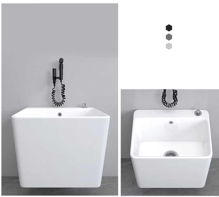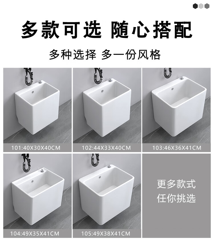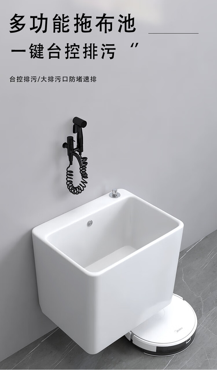 Household wall-mounted mop pool wall row home balcony bathroom wall-mounted mop pool ceramic large size premium glazed-10346*36 one-click drainage