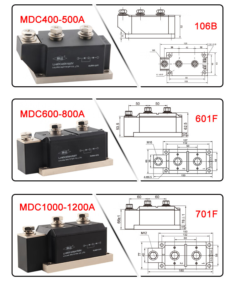 Liu Jing's new anti-reverse diode module MDC55A-1000A photovoltaic automotive rectifier high power SiC MDC25A