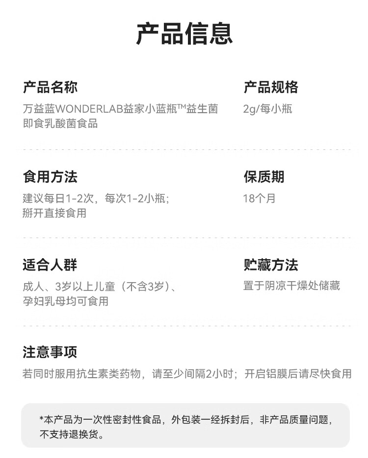 WonderLab small blue bottle of probiotics for adults' gastrointestinal tract 40 bottles of freeze-dried powder 40 bottles to protect gastrointestinal health