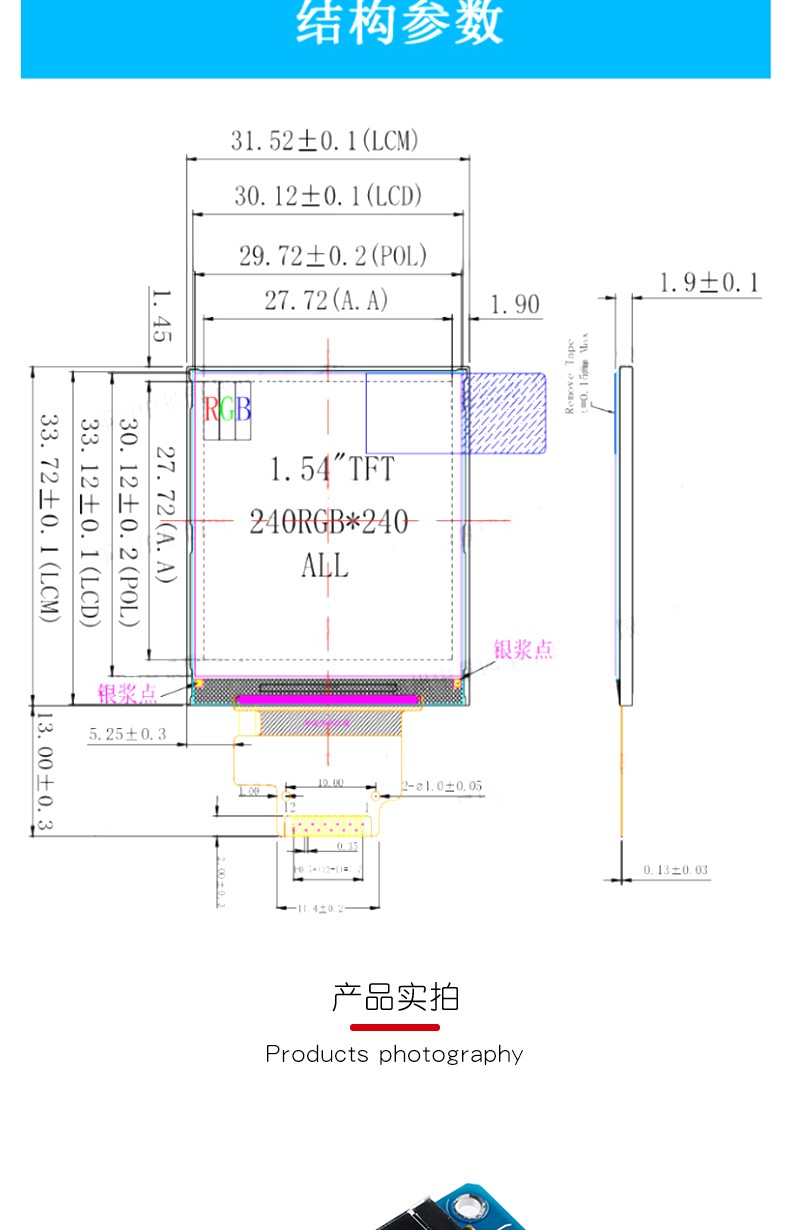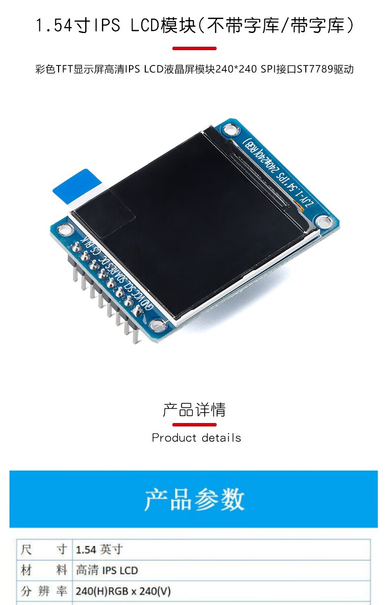 1.54-inch color TFT display high-definition IPS LCD module 240*240 SPI interface ST7789 driver 1.54-inch IPS LCD module (without font library)