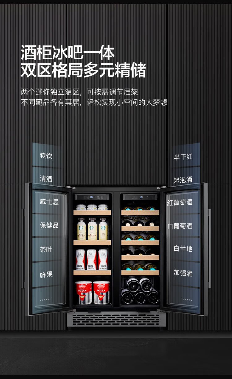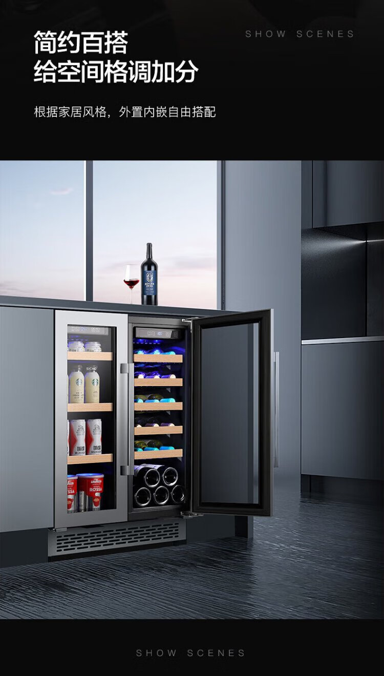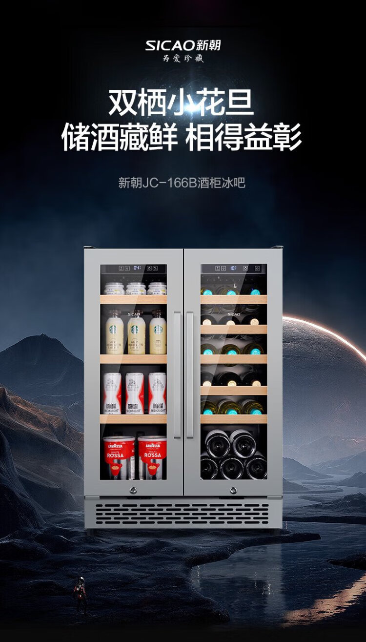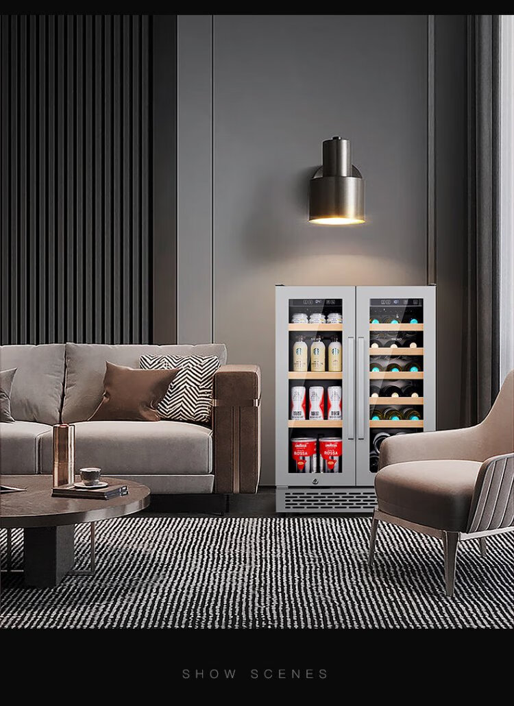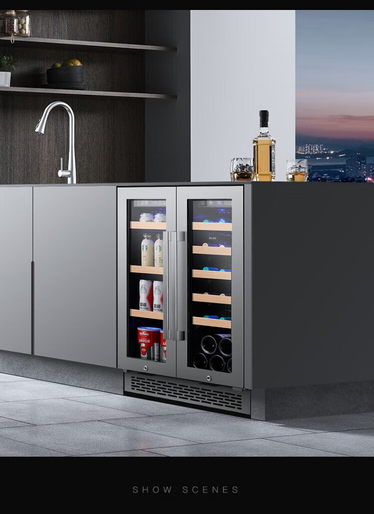 Xinchao Consulting Discount Embedded red wine cabinet with constant temperature and humidity control double-door wine cabinet for home living room small wine and liquor cabinet fresh-keeping refrigerated beverage display cabinet 166B 166B double-door wine cabinet ice bar can be embedded 126L
