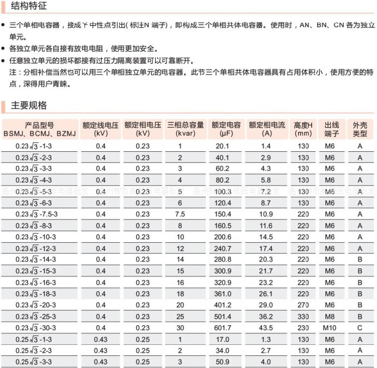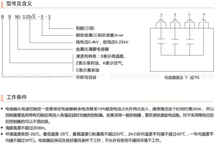 Group phase compensation parallel capacitor BZMJ/BCMJ/BSMJ0.253-20-3