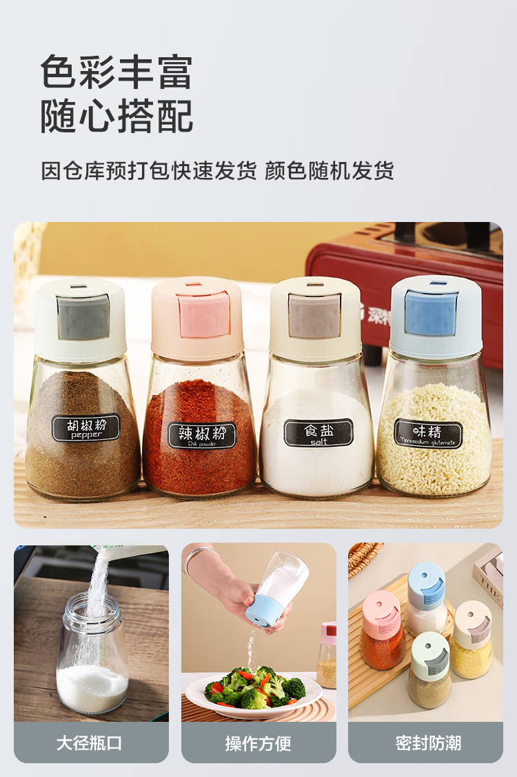 Glass quantitative salt shaker household kitchen seasoning utensils sealed moisture-proof salt-spreading MSG seasoning jar salt control bottle quantitative salt shaker 4 pieces