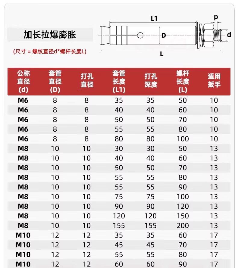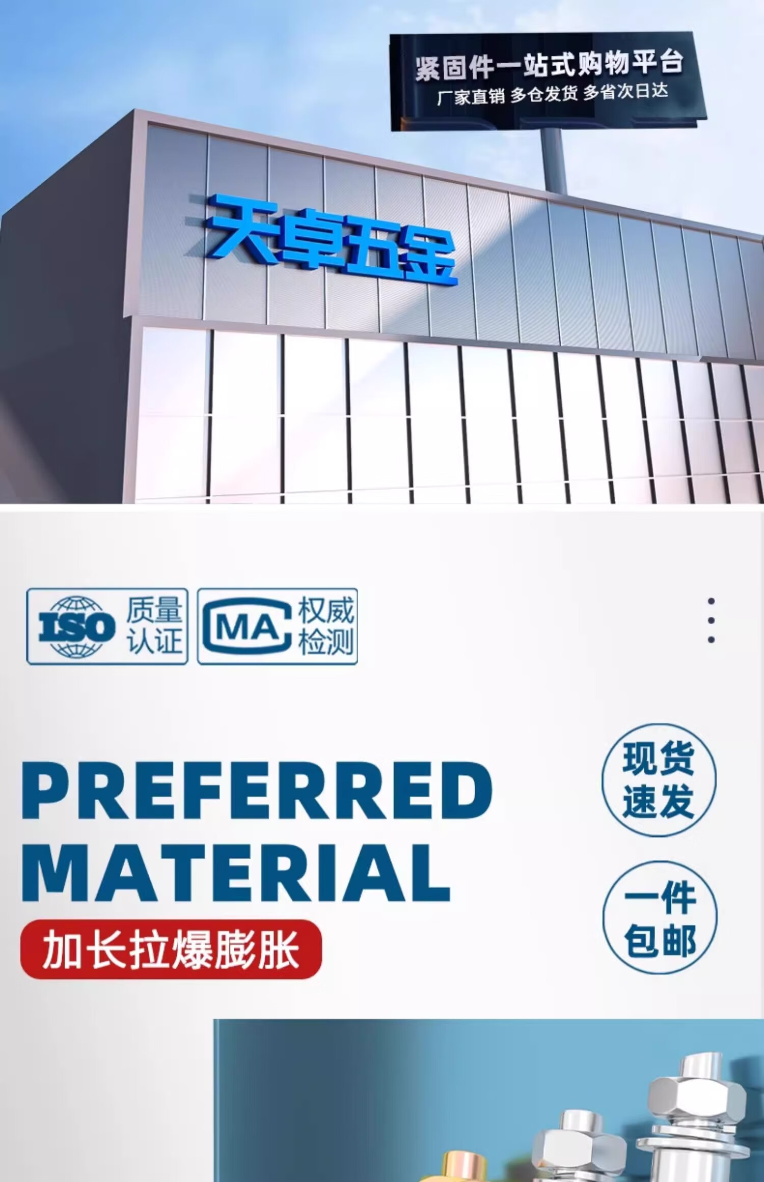 Tianzhuo Hardware 304/316/201 stainless steel external expansion bolt internal expansion blasting tube extension explosion screw 6M8M10M12 304-M6*50-5 pcs