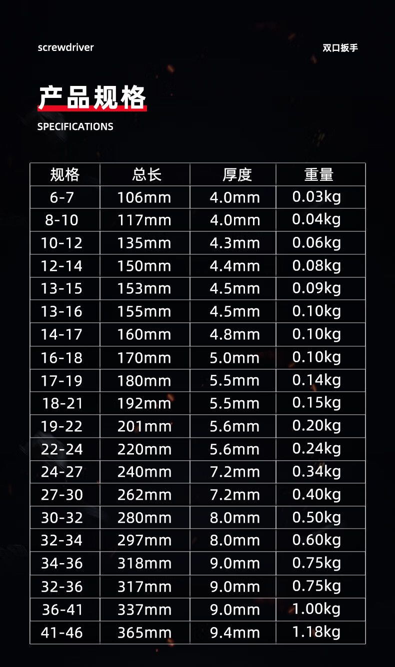 Tianzhuo Hardware Open Wrench Hardware Tools Large Double-headed Wrench 6-7-8-10-12-13-14-17-19-21 8-10
