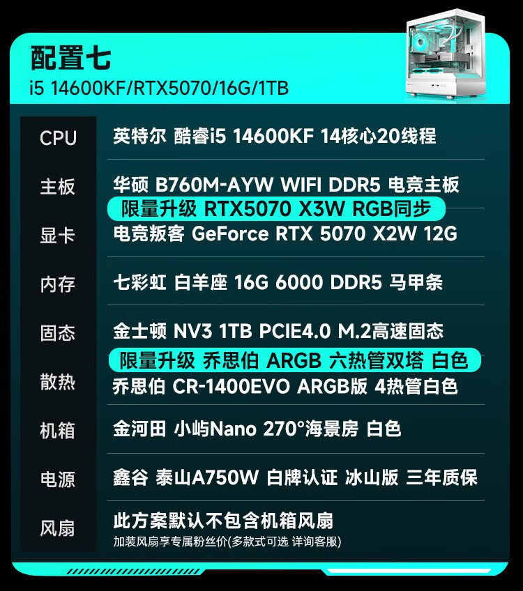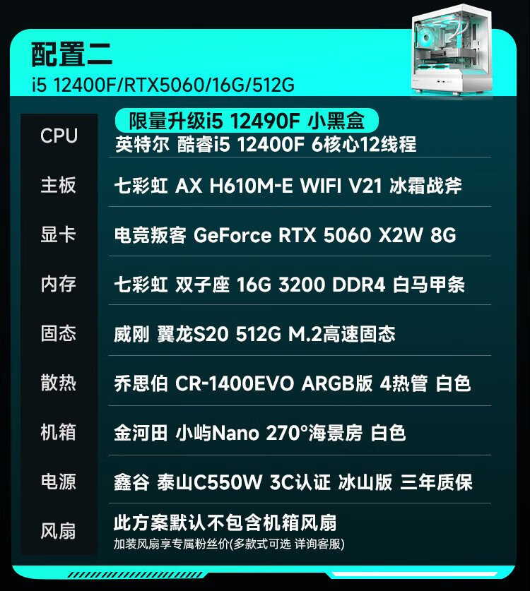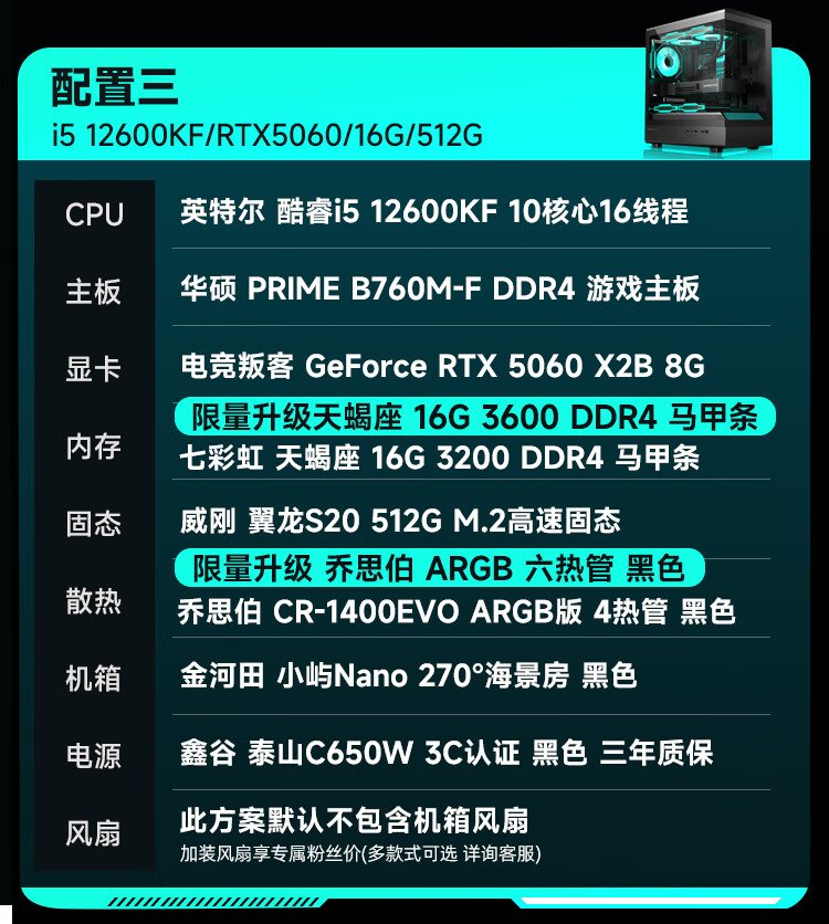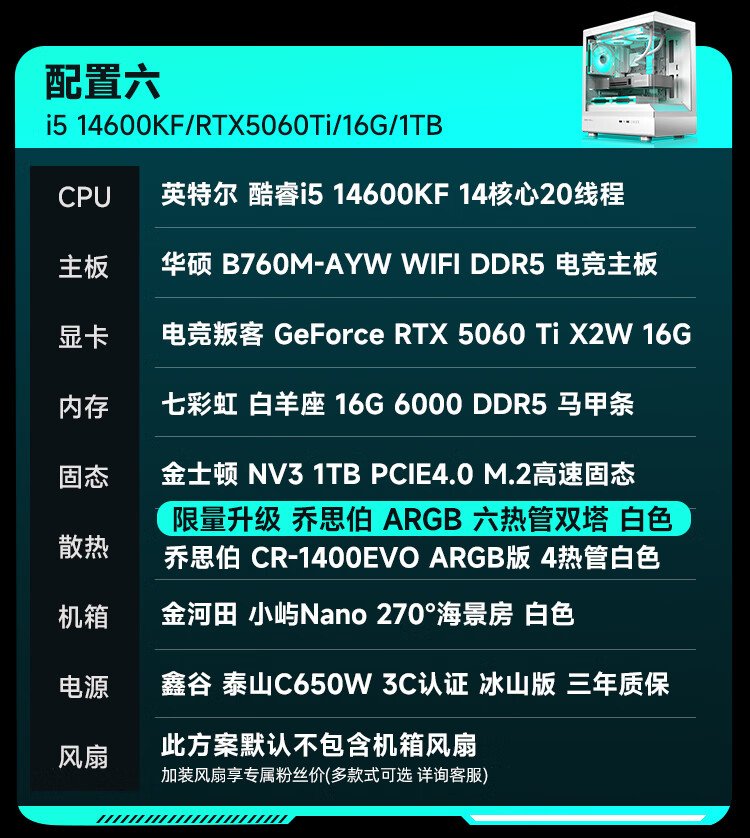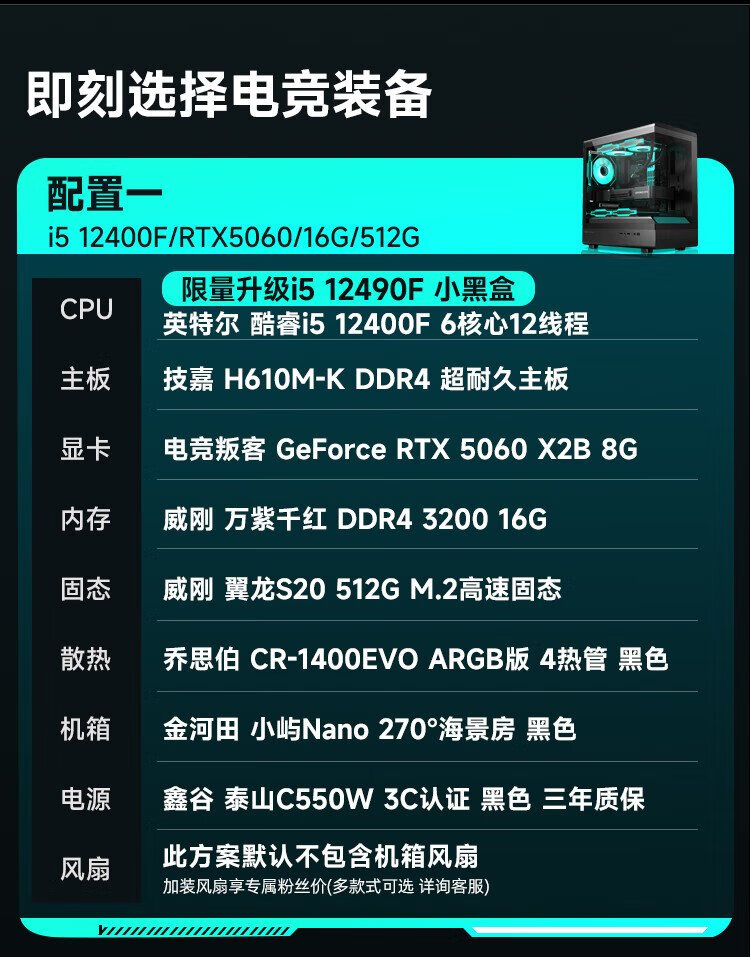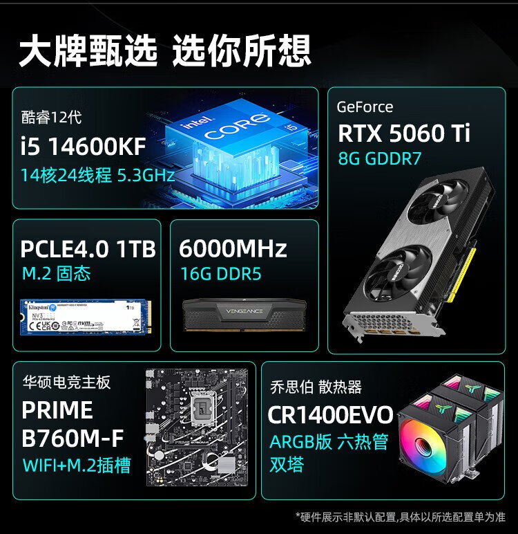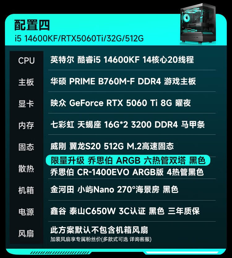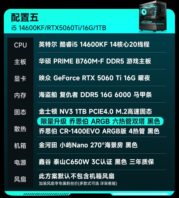 E-sports rebel RTX5060 host Core i5 12400F/12600KF/14600KF/5060Ti/5070 DIY complete desktop computer game assembly host with four 14600KF丨5060Ti丨32G D4