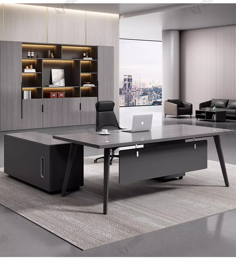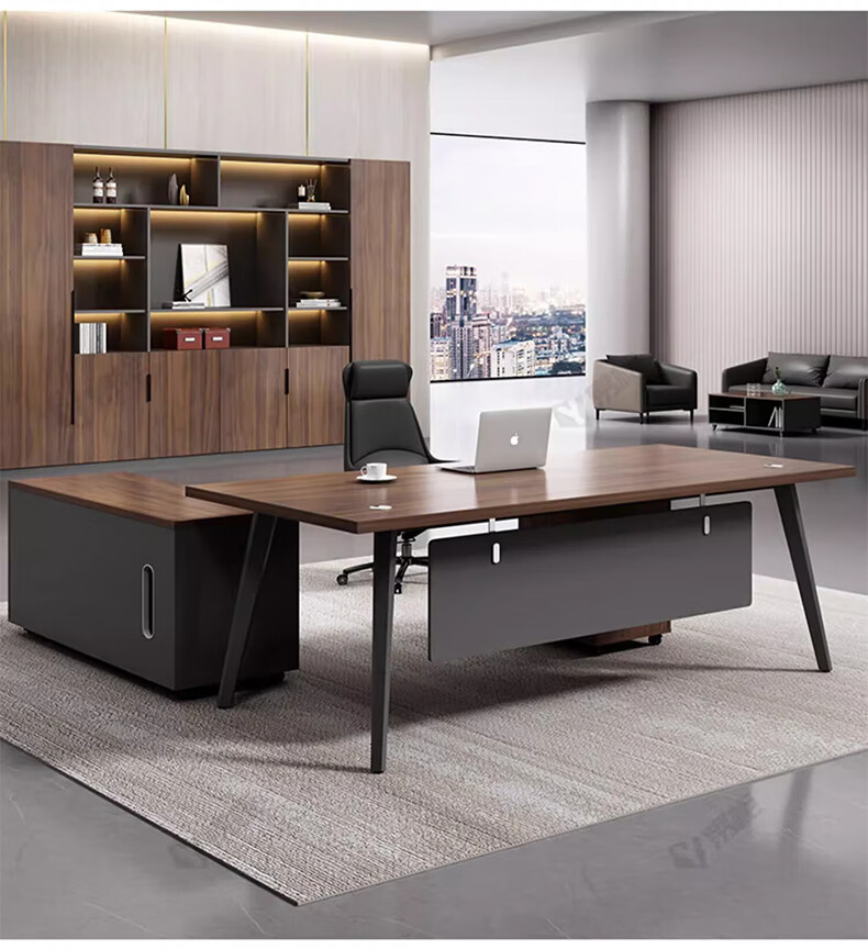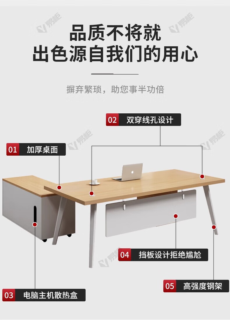 Lelike desk simple modern manager desk office desk and chair combination light luxury design lacquered boss desk president desk 160CM*80CM single table + side cabinet