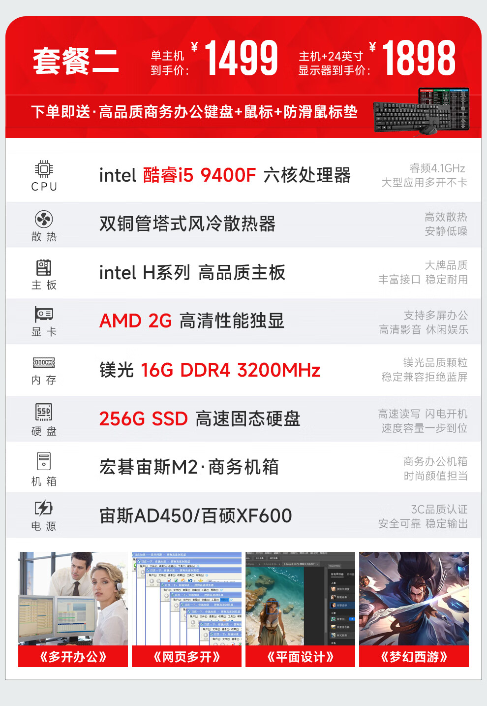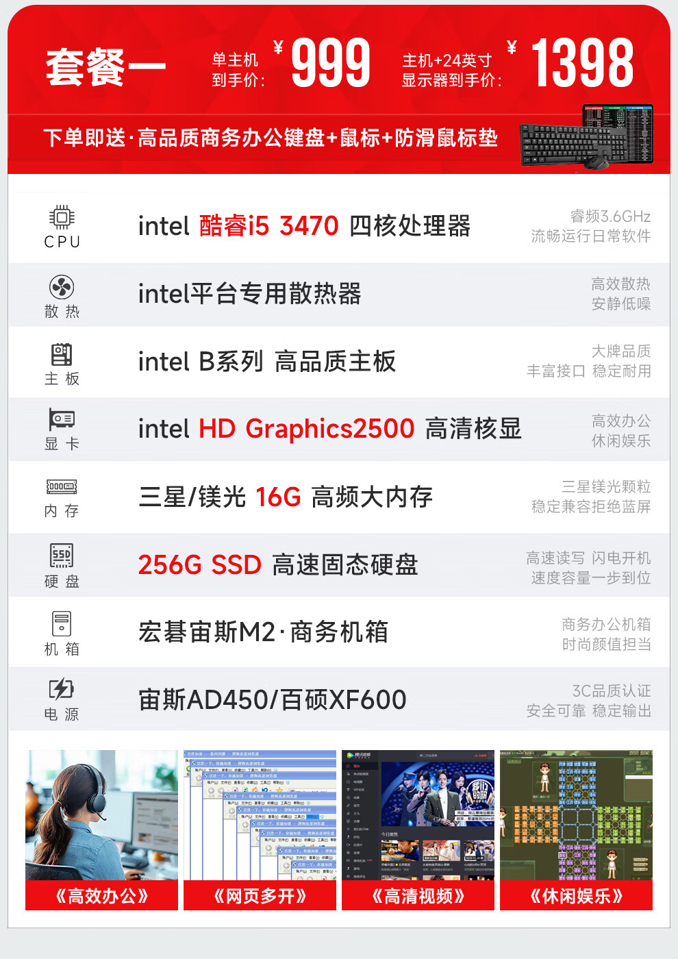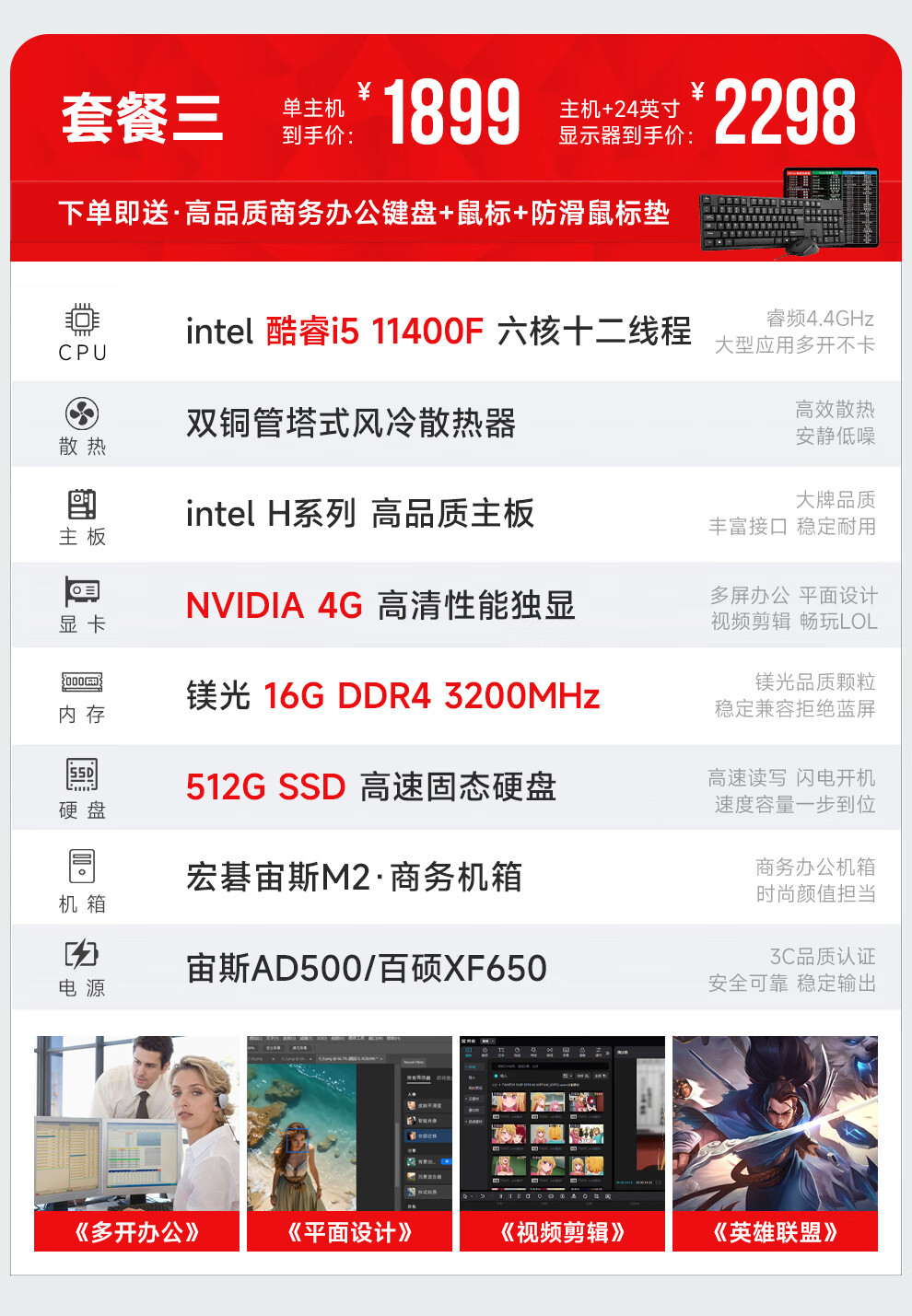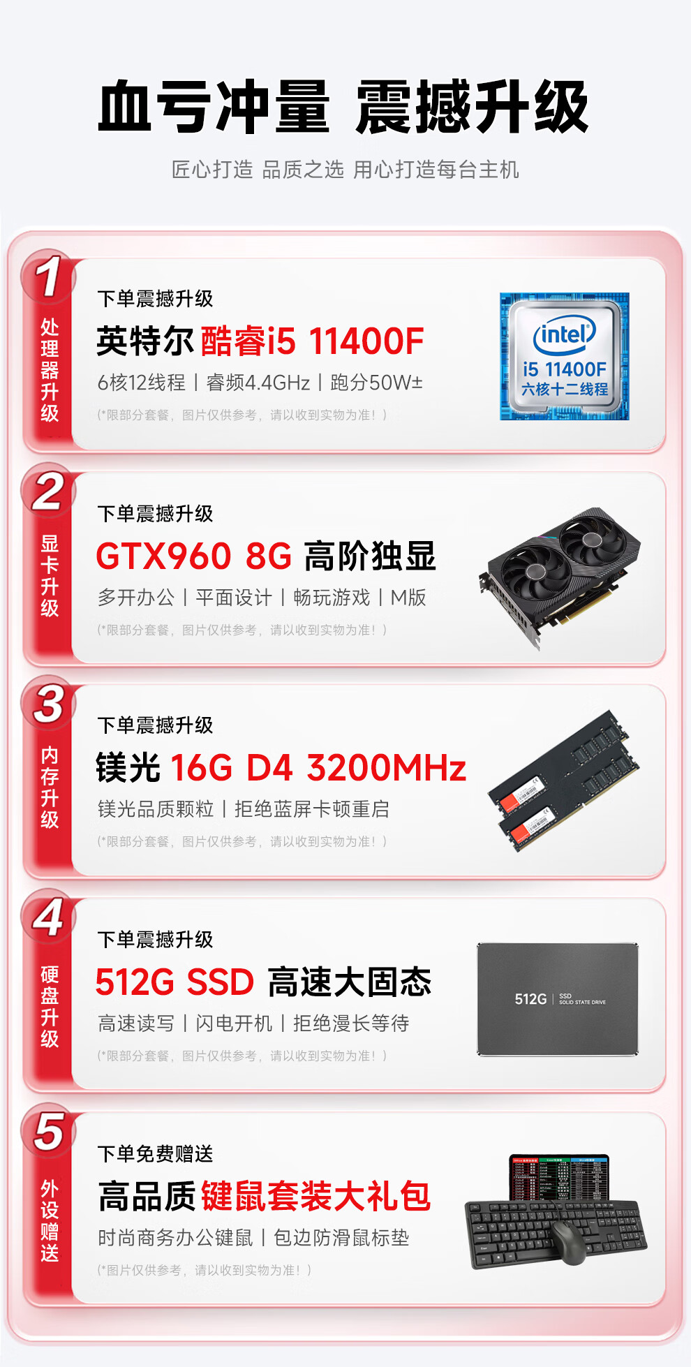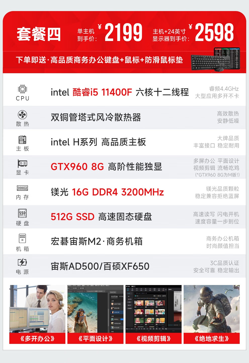 Navigator/Acer i5 9400F/11400F/GTX960 8G Enterprise Business Office Commercial Home Large Capacity Gaming Desktop Computer Host DIY Assembly Complete Set Single Host (Excluding Monitor) Four i5 11400F丨8G Performance Independent Display丨512G