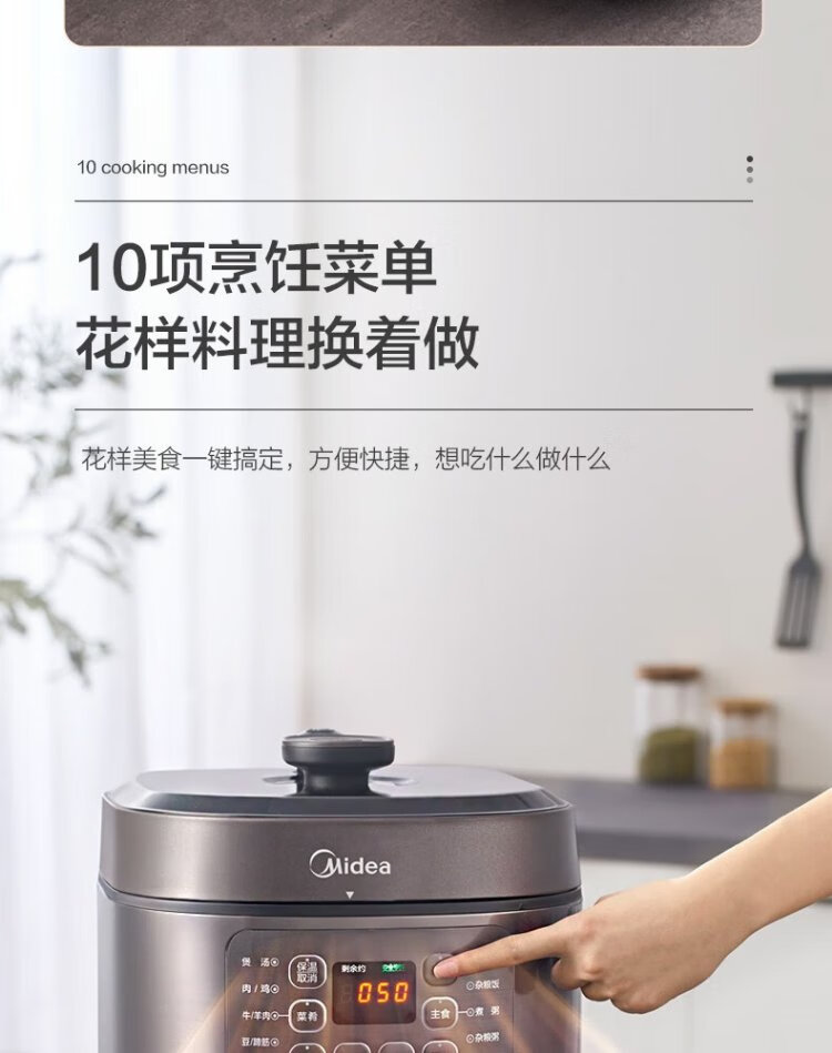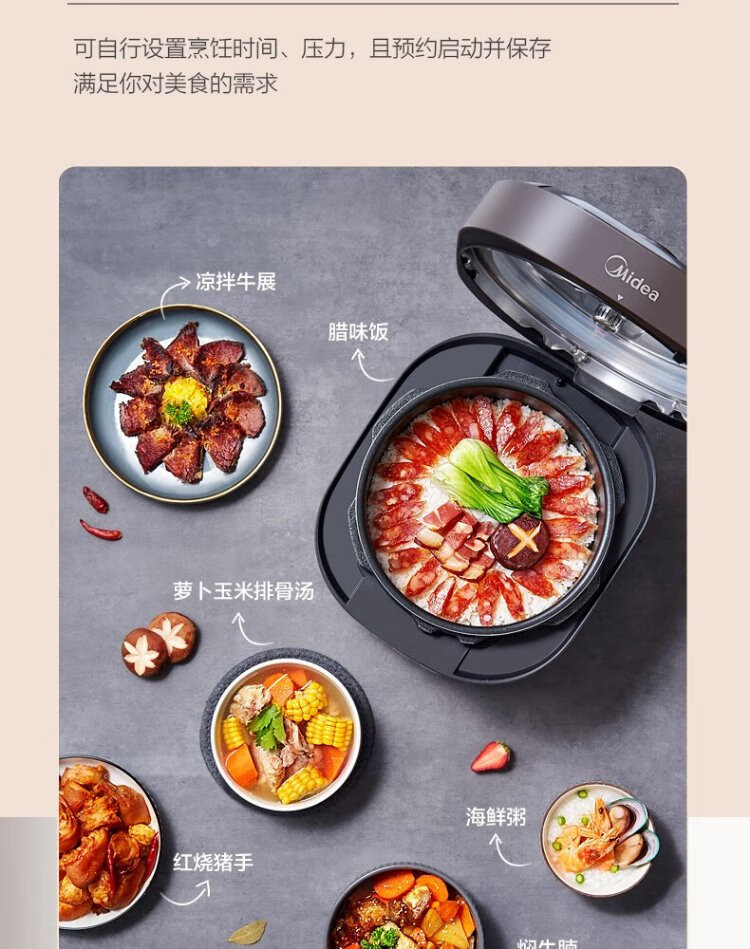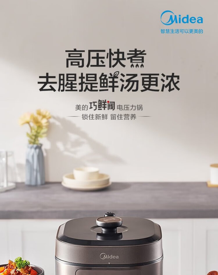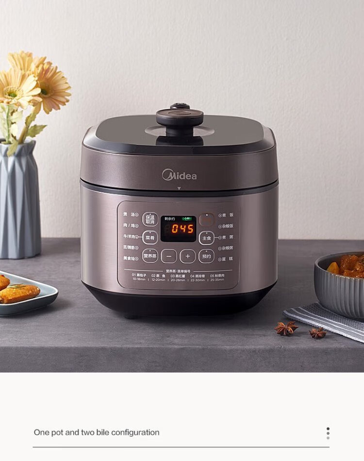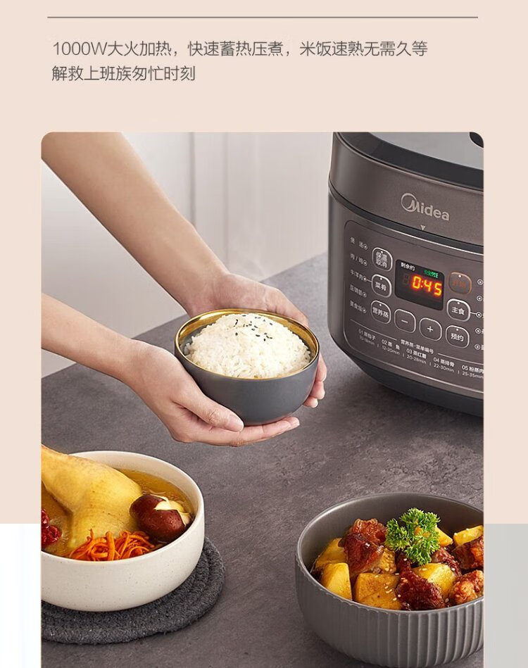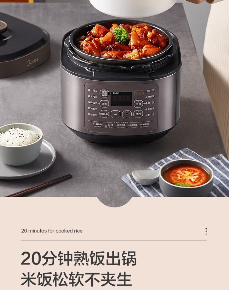 Midea electric pressure cooker, electric pressure cooker, smart pressure cooker, household high-pressure rice cooker, one-click exhaust, new multifunctional high-pressure freshness-enhancing pressure cooker 5L home version MY-50M5-206- 5L pressure cooker
