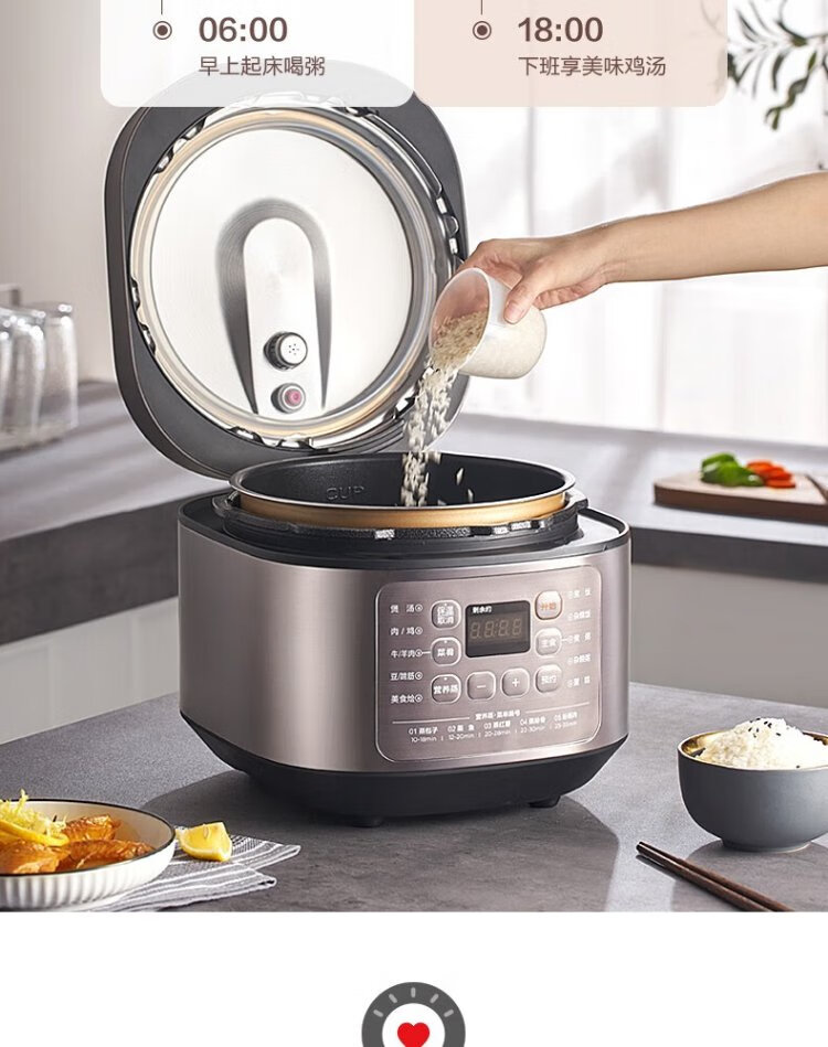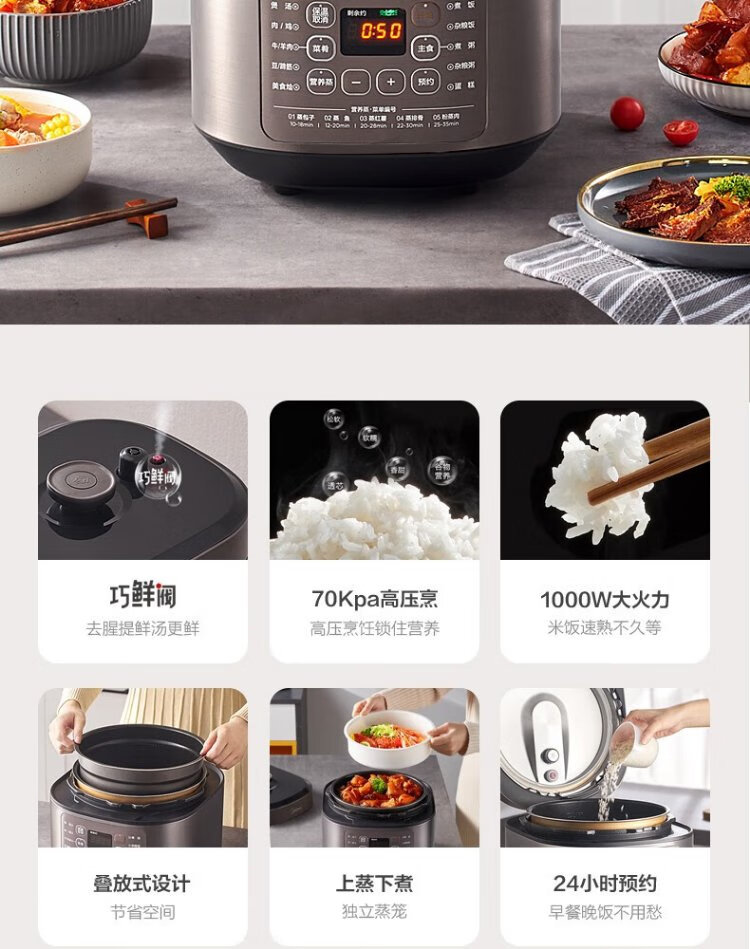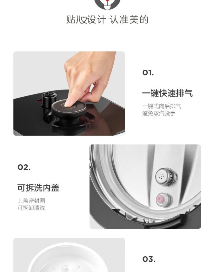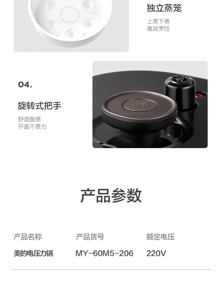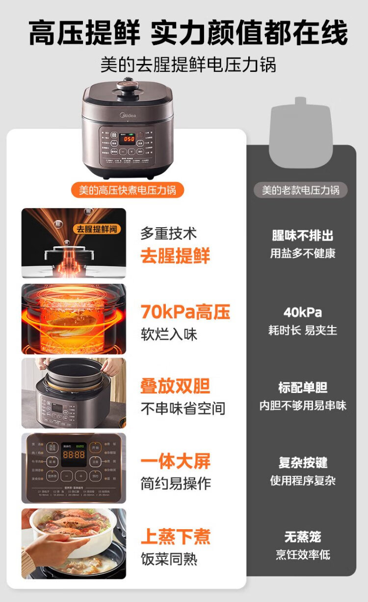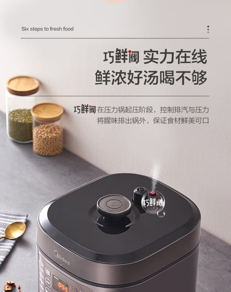 Midea electric pressure cooker, electric pressure cooker, smart pressure cooker, household high-pressure rice cooker, one-click exhaust, new multifunctional high-pressure freshness-enhancing pressure cooker 5L home version MY-50M5-206- 5L pressure cooker