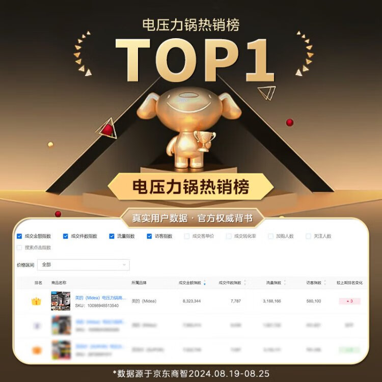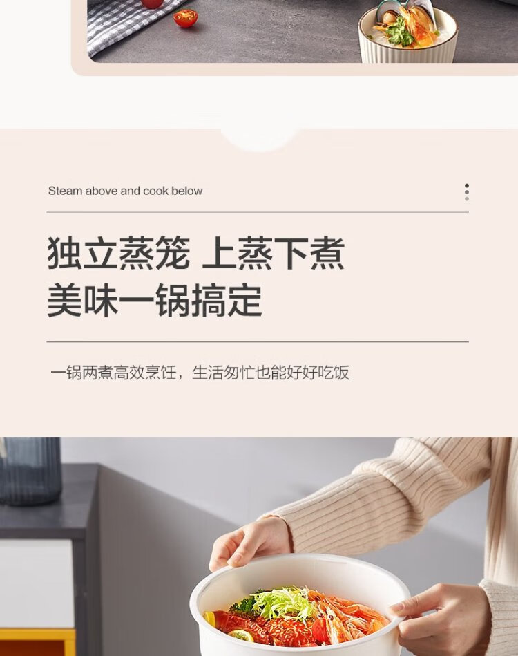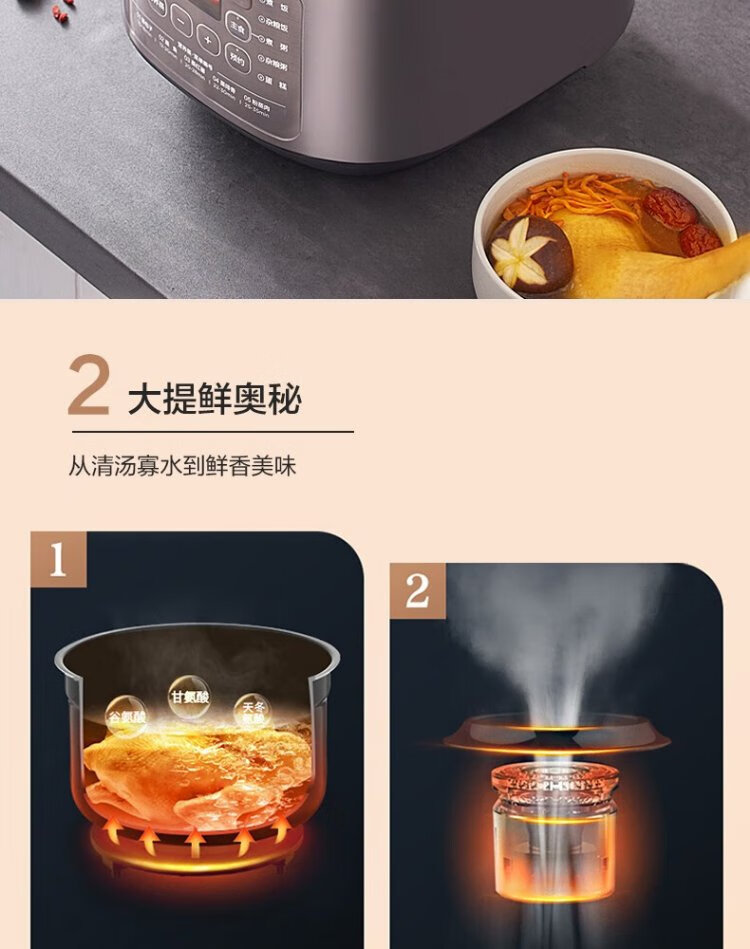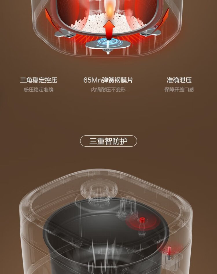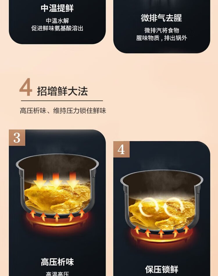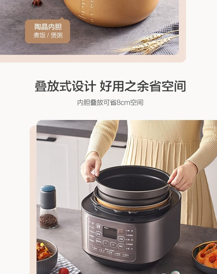 Midea electric pressure cooker, electric pressure cooker, smart pressure cooker, household high-pressure rice cooker, one-click exhaust, new multifunctional high-pressure freshness-enhancing pressure cooker 5L home version MY-50M5-206- 5L pressure cooker