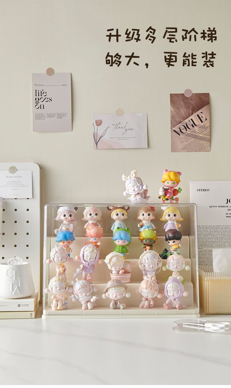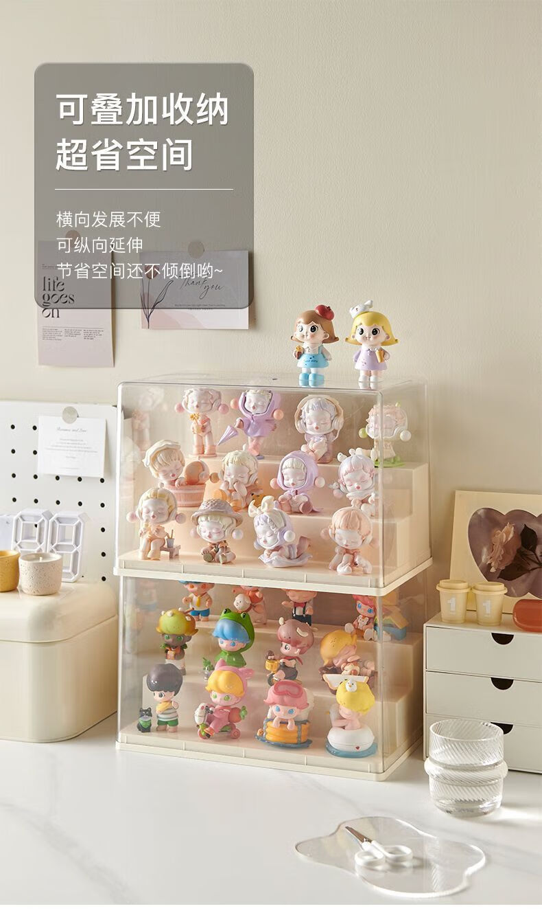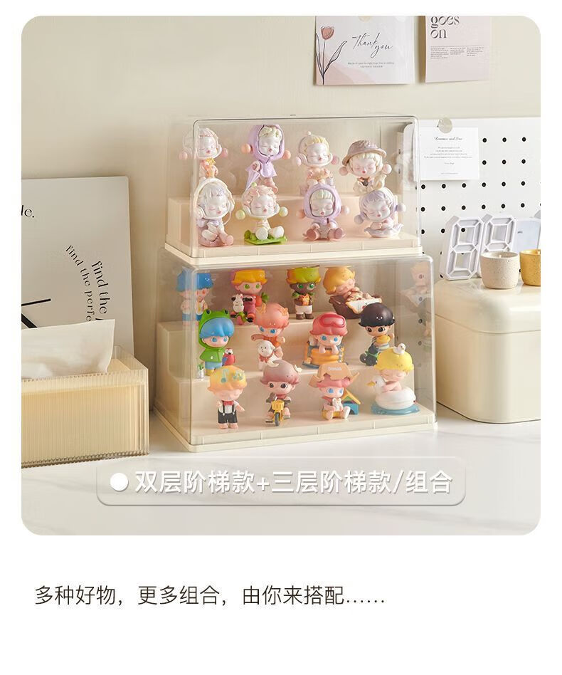 Haofanjie Blind Box Display Box Figure Transparent Display Cabinet Bubble Mart Storage Box Acrylic Display Rack Storage Figure Cabinet Cream Large/Three Layers 1