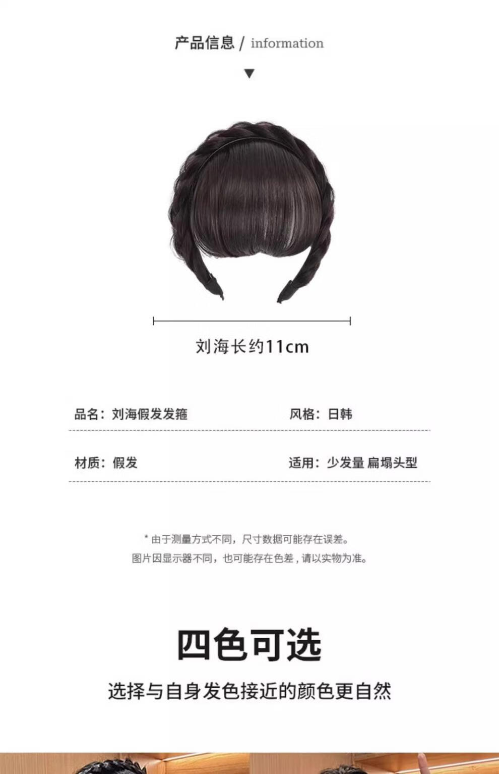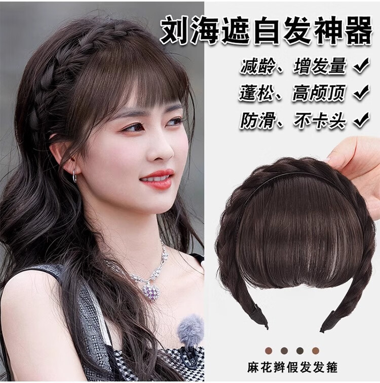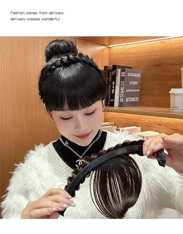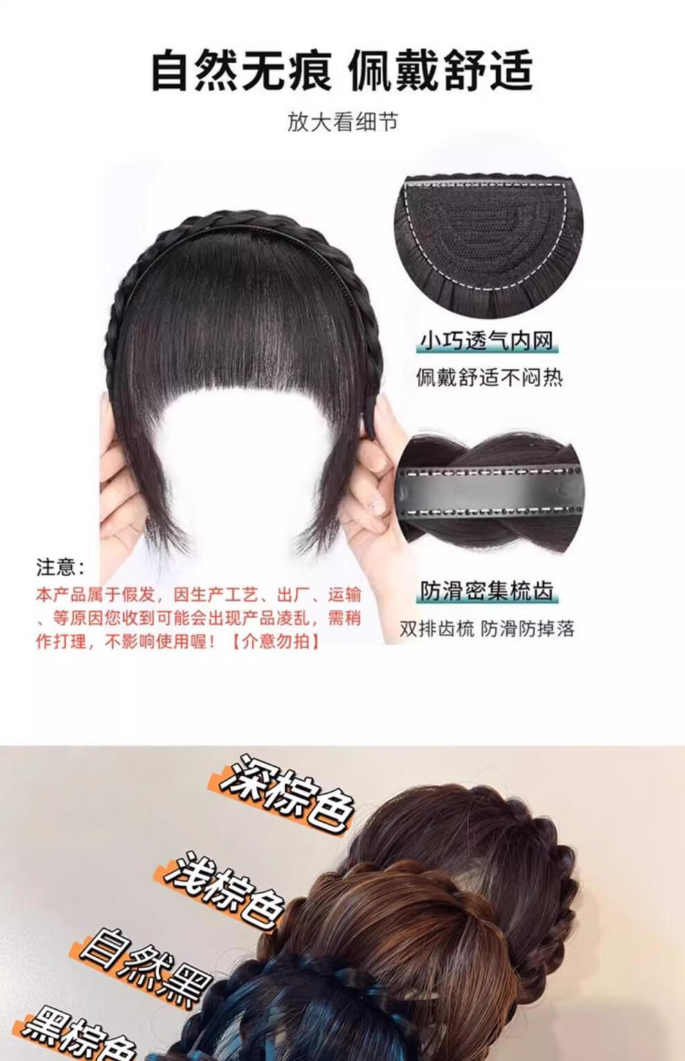 LEMIAO Wig Women's Hairband Hairpin Bangs One-piece Real Hair Replacement Top Thin Replacement Hair Piece Seamless Covering White Hair Thin Replenishment Forehead Twist Natural Black Style A13-301