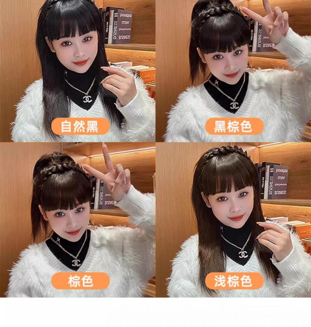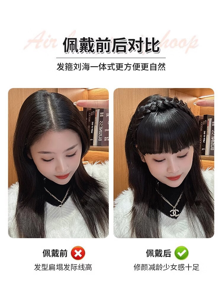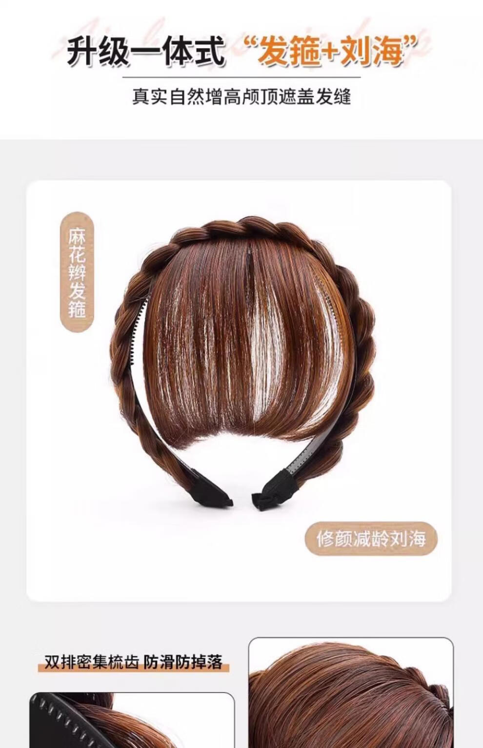 LEMIAO Wig Women's Hairband Hairpin Bangs One-piece Real Hair Replacement Top Thin Replacement Hair Piece Seamless Covering White Hair Thin Replenishment Forehead Twist Natural Black Style A13-301