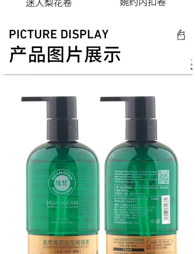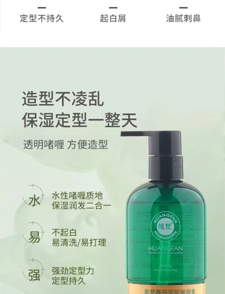 Huangfan Fragrance Volume Elastin Styling Gel Cream Perm Curl Hair Moisturizing Men's Back Style Fragrance Volume Elastin 2 Bottles 300ml