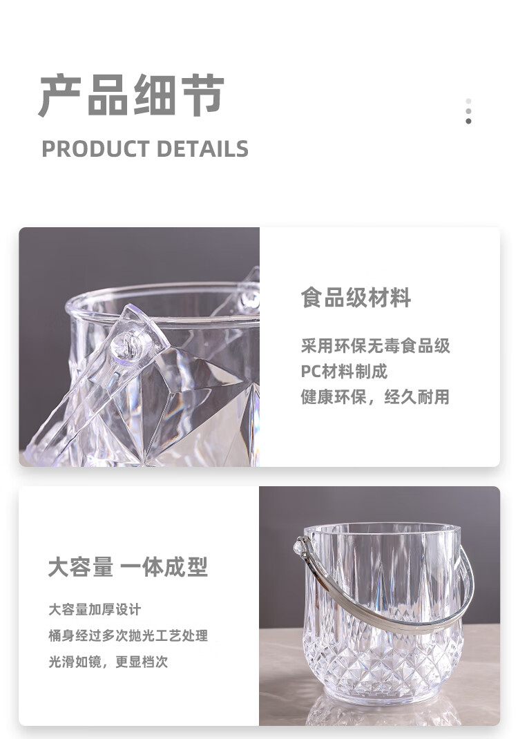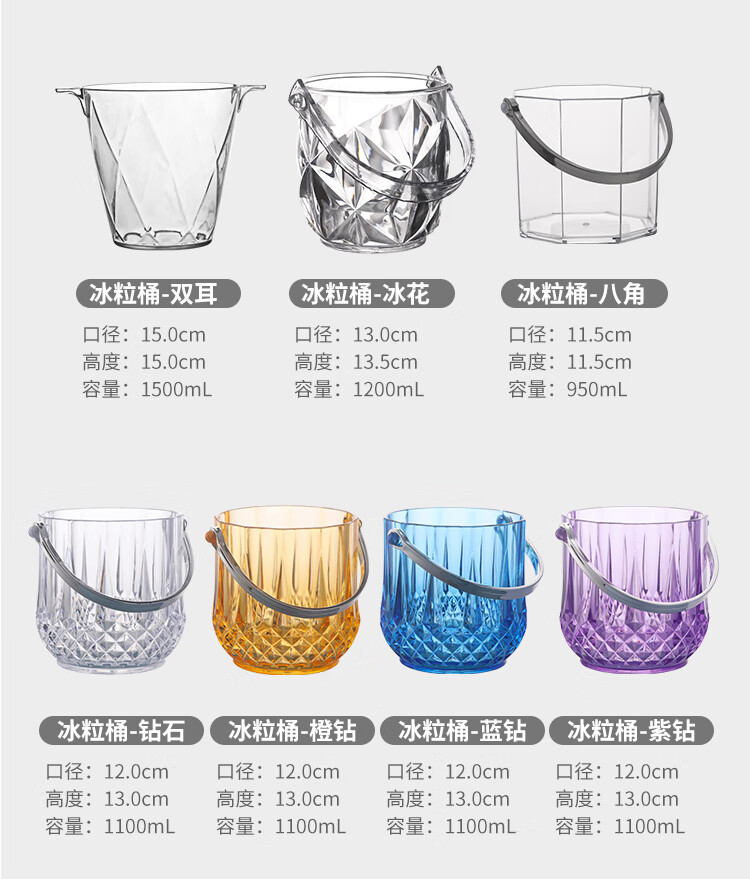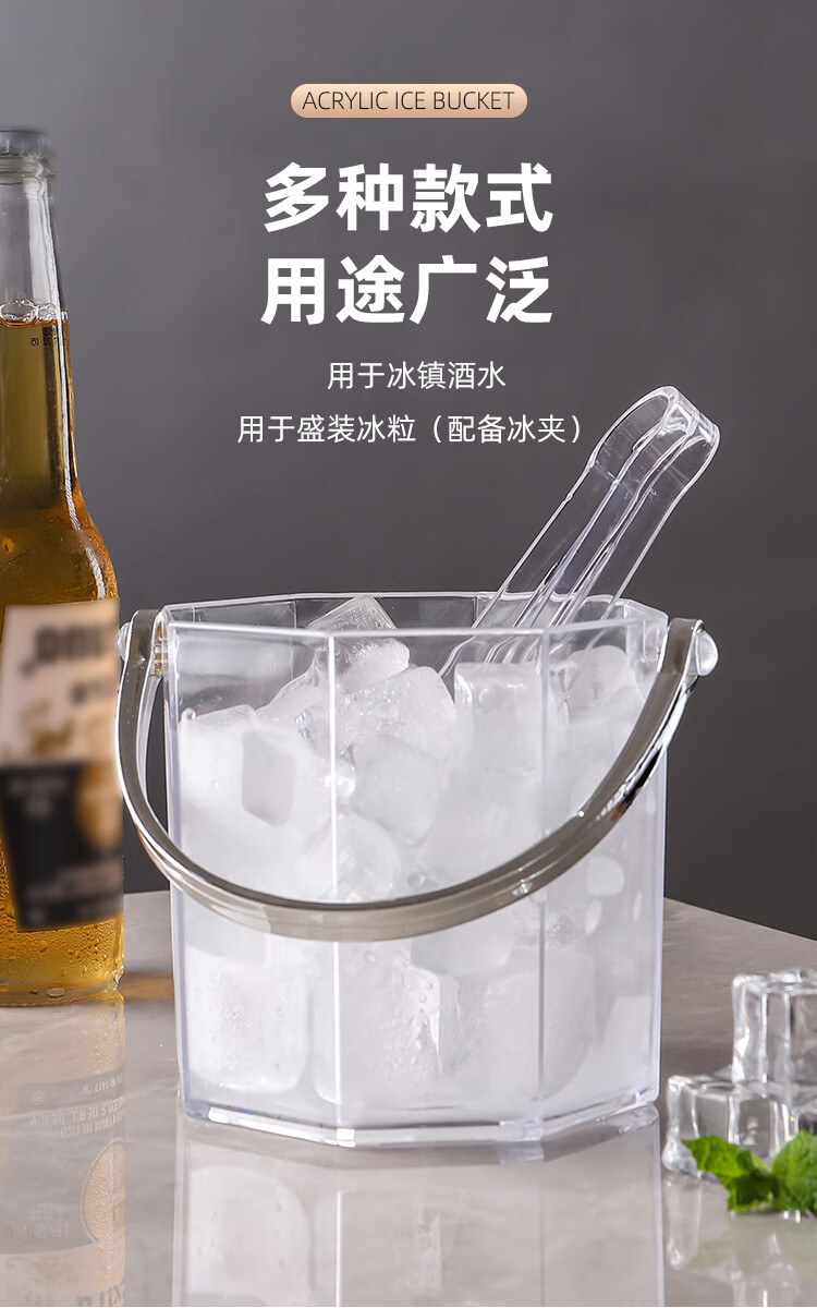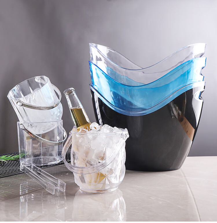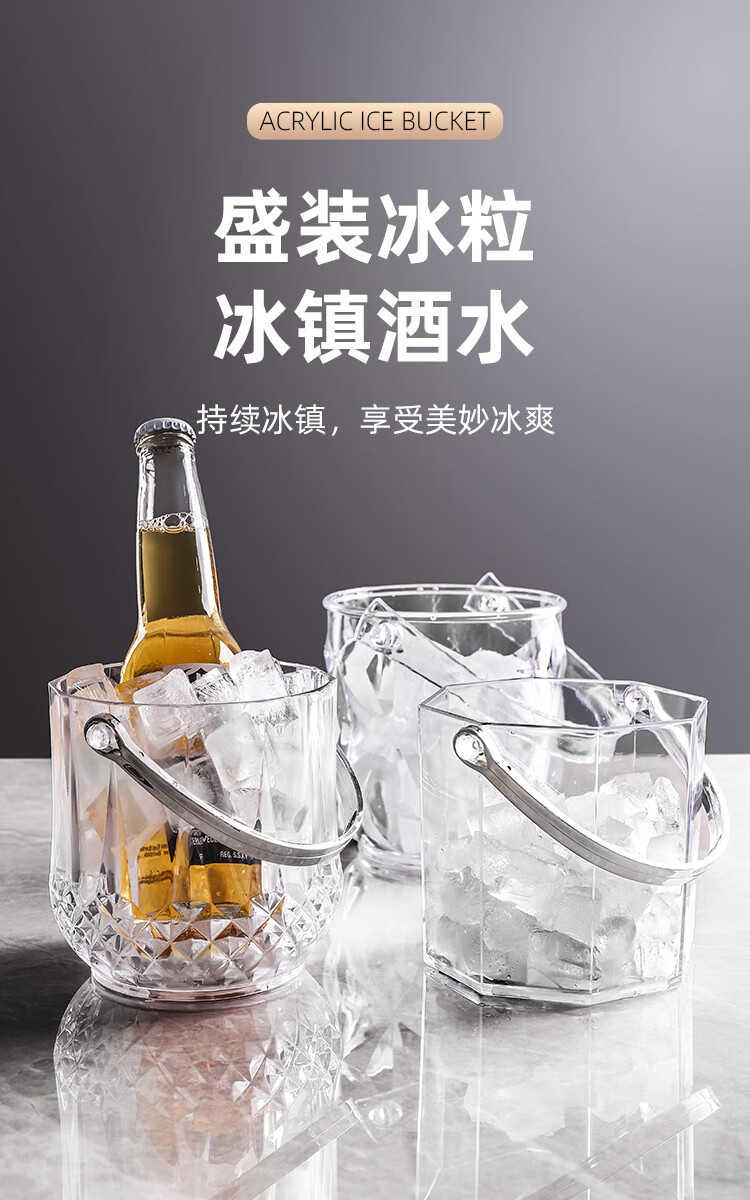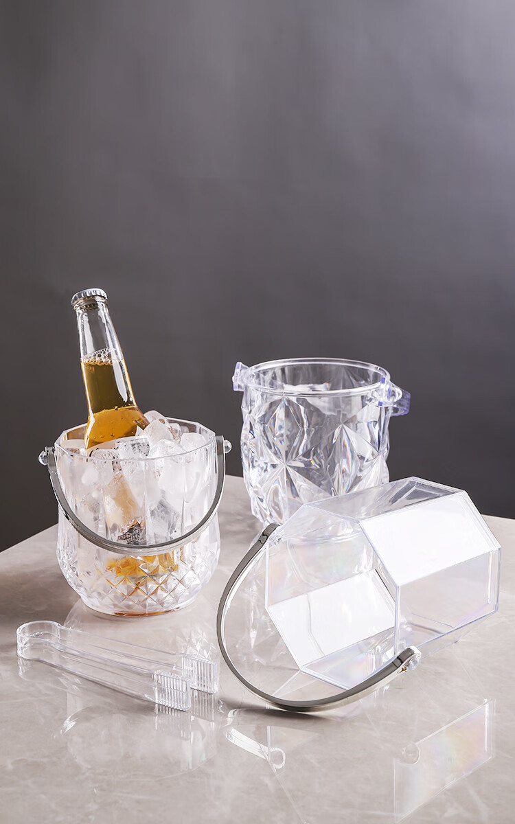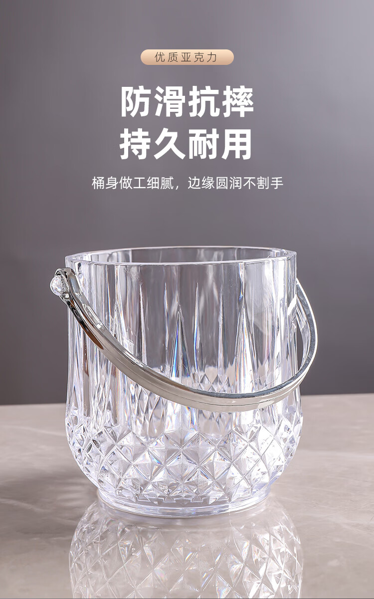 Magic Bean Shenghuo Acrylic Ice Bucket High Value Commercial Champagne Bucket Plastic Home Bar KTV Small Ice Bucket Ice Bucket Thickened Diamond Crystal Ice Bucket 1100mL-Free