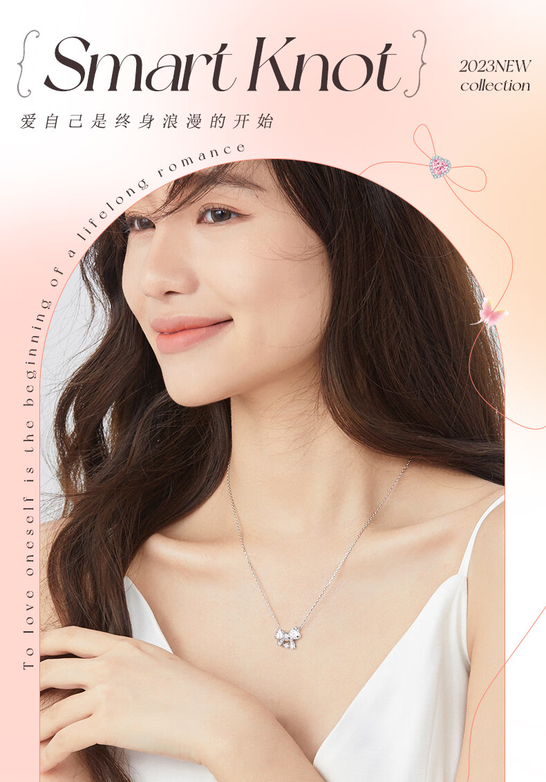 Fanci Fan Qi Smart Knot Series Love Heart Necklace Female Butterfly Clavicle Chain Light Luxurious High-end Gift Birthday for Girlfriend Love Heart Necklace