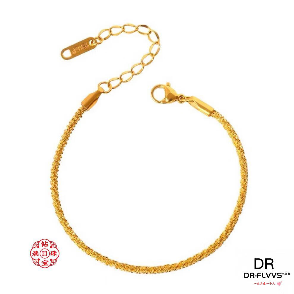 Fat Donglai's same 18K gold baby's breath anklet new style 24K yellow l gold women's 999 plain gold 3D hard gold chain baby's breath anklet