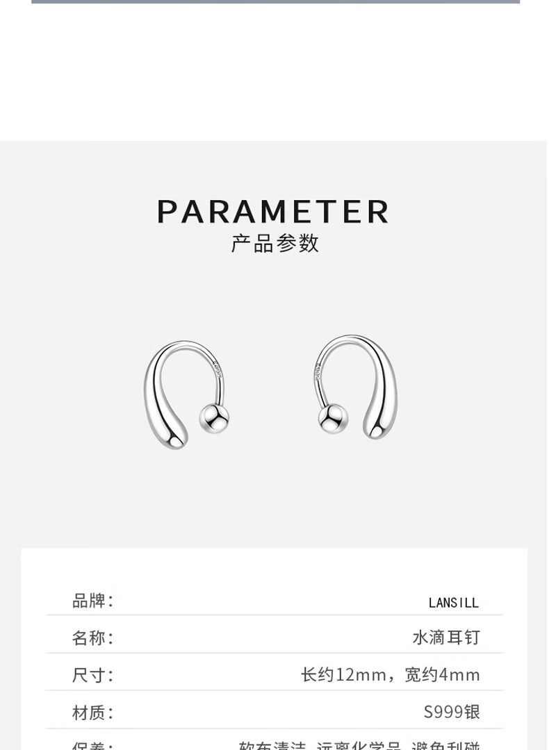 LANSILL999 Pure Silver Water Drop Earrings Feminine High-end Earrings 2025 New Light Luxury Niche Earrings Birthday Gift 999 Pure Silver Water Drop Earrings E3482