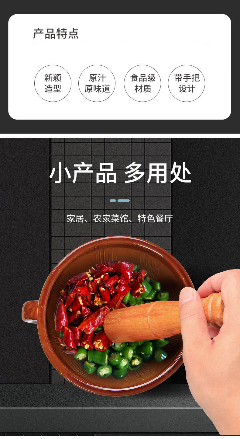 Jieshunxing bowl household chili jar old-fashioned eggplant eggplant vegetable bowl manual garlic pounder garlic mortar thickened grinder without wooden hammer LBWMCH-89 grinding bowl / vegetable bowl