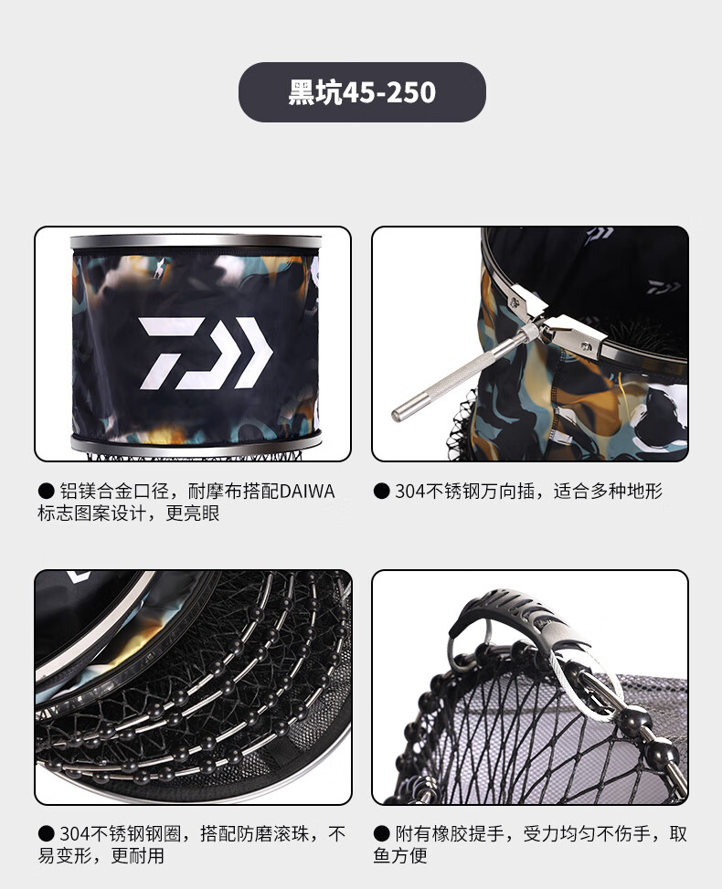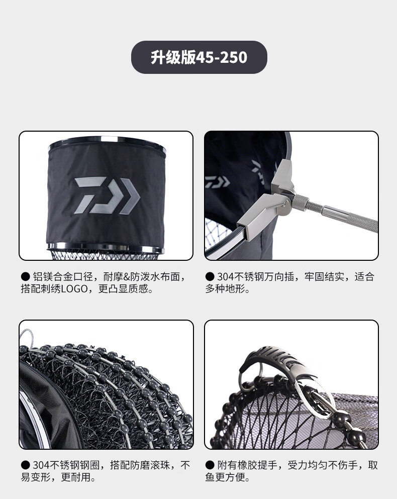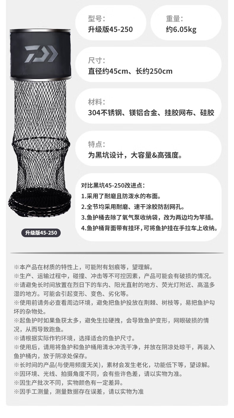 DAIWA Taiwan Fishing Protection Heikengye Fishing Net Pocket Anti-hanging Fishing Protection Stainless Steel Fish Cage 45cm 2.5m Upgraded Version 45-250