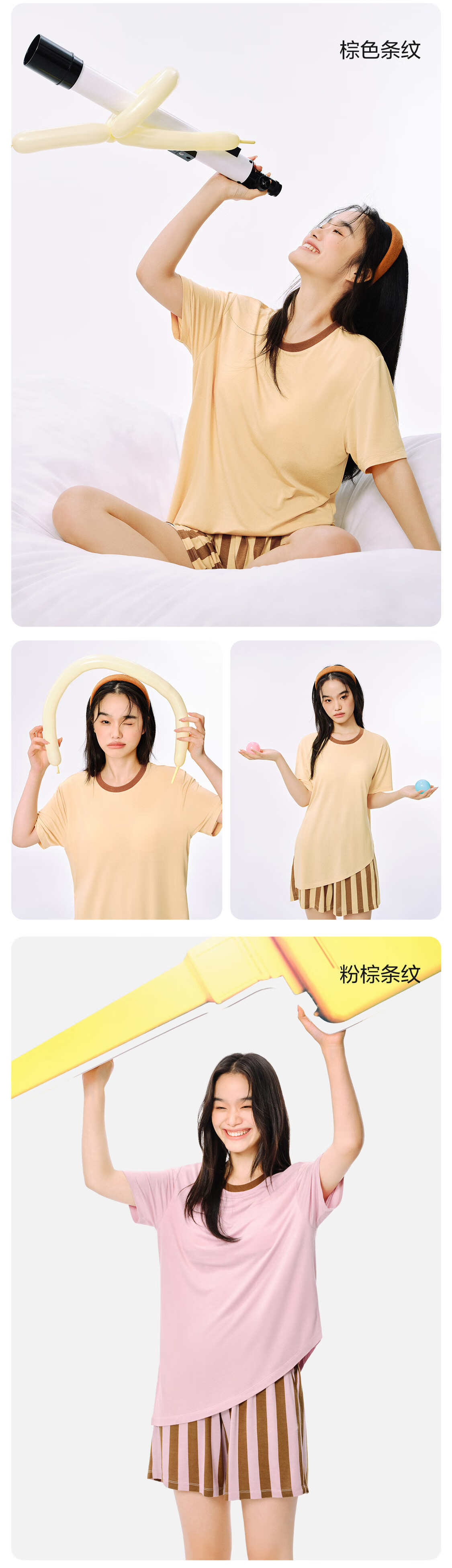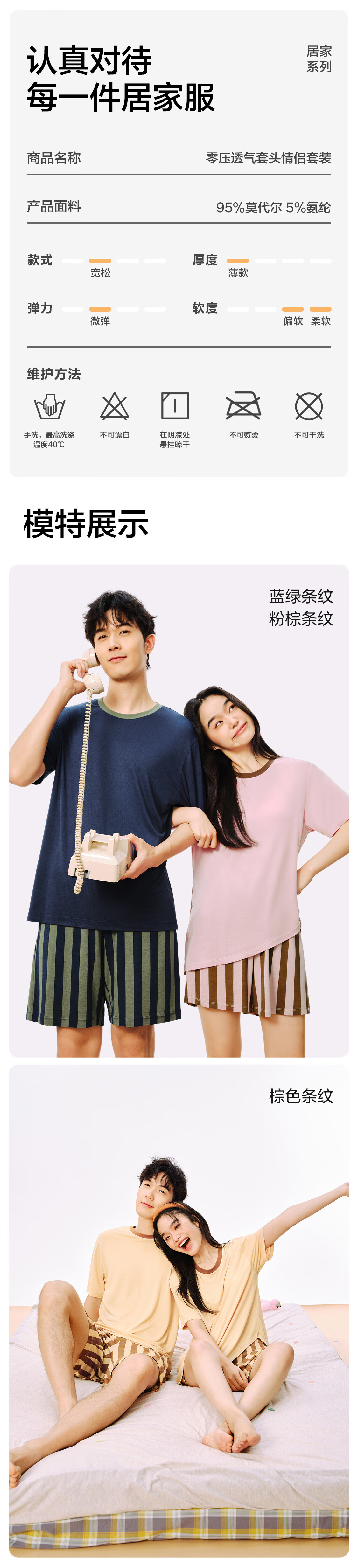 NetEase Selects Modal Comfortable Home Clothes Zero Pressure Breathable Pullover Couple Suit Pajamas Contrasting Color Design Can Be Weared Outside Brown Stripes (Female) S