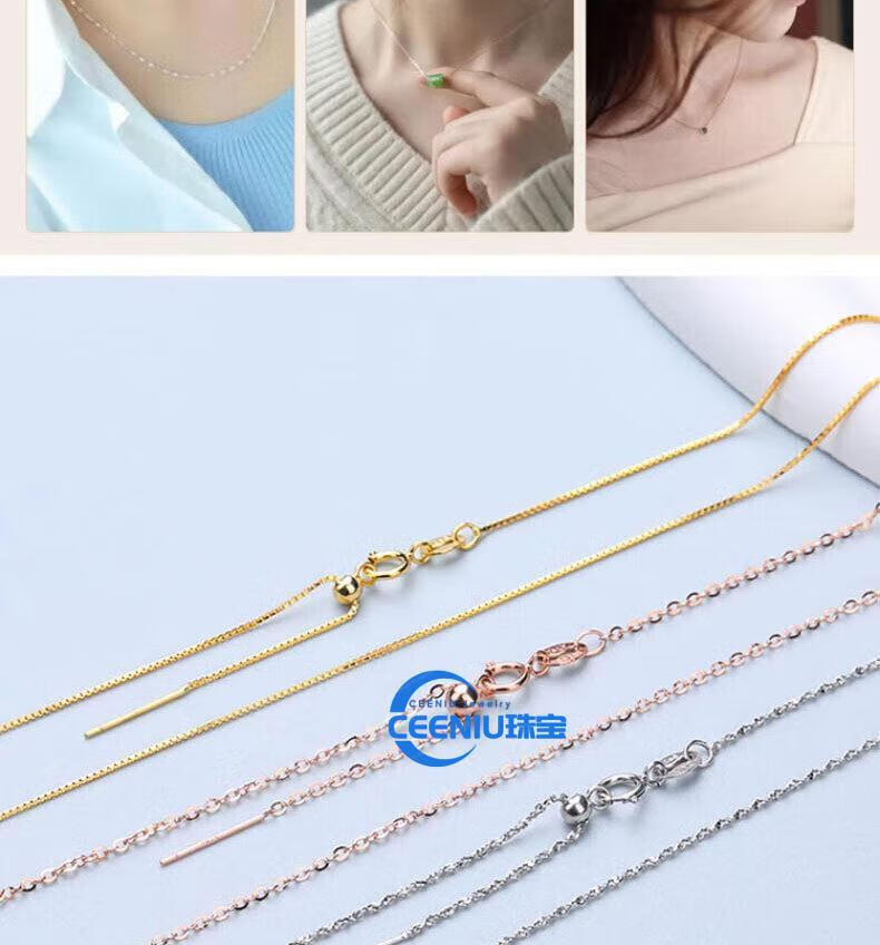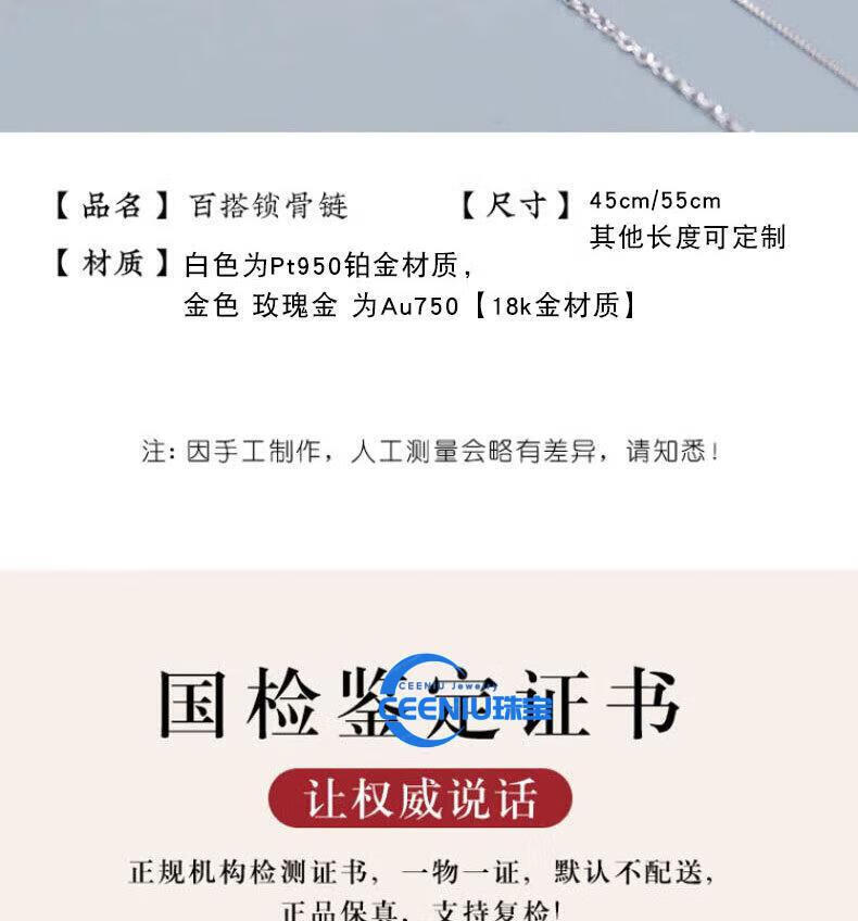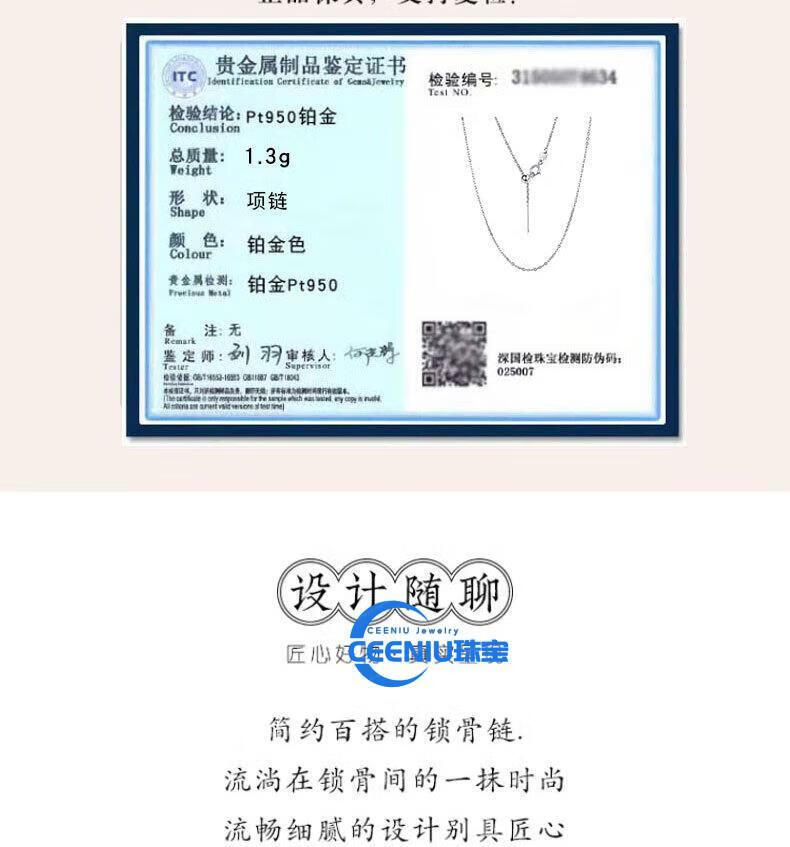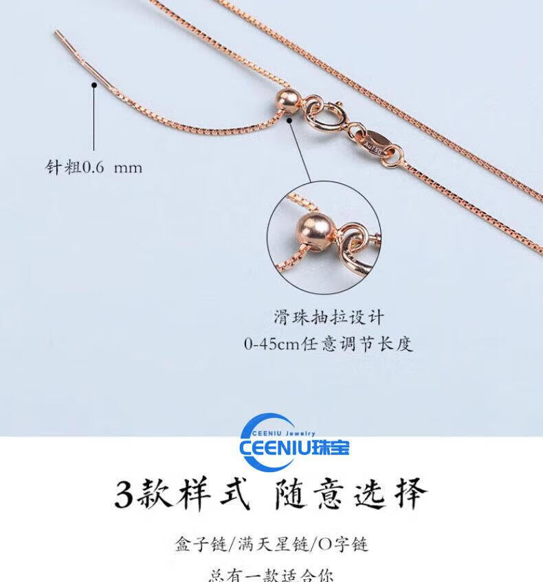 CEENIU Fat Donglai same style pt950 platinum pin chain 18k gold necklace Chopard chain rose gold color gold 0.6mm thick platinum box/chain total length 45 cm can be adjusted freely