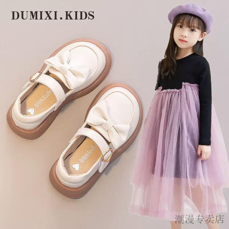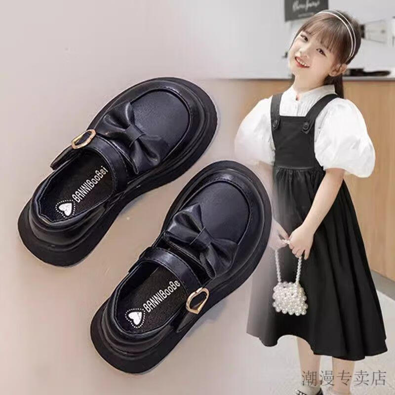 G.duck Girls' Leather Shoes 2026 Spring and Autumn New Children's Shoes Little Girls Princess Shoes Soft Soled Western Style Shoes Performance Shoes Black 28 Inner Length 17.8cm