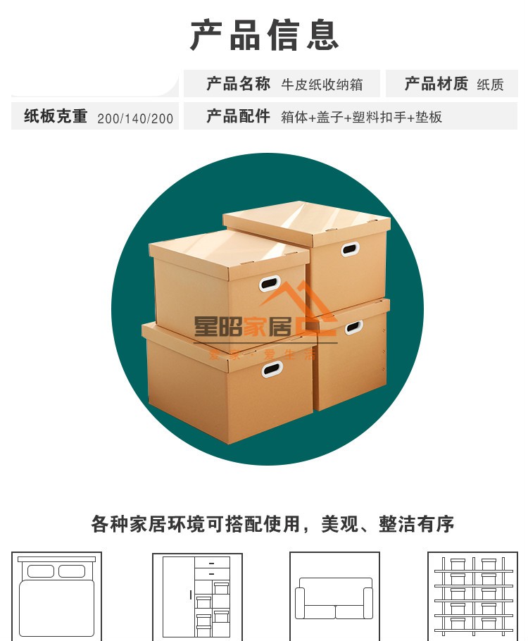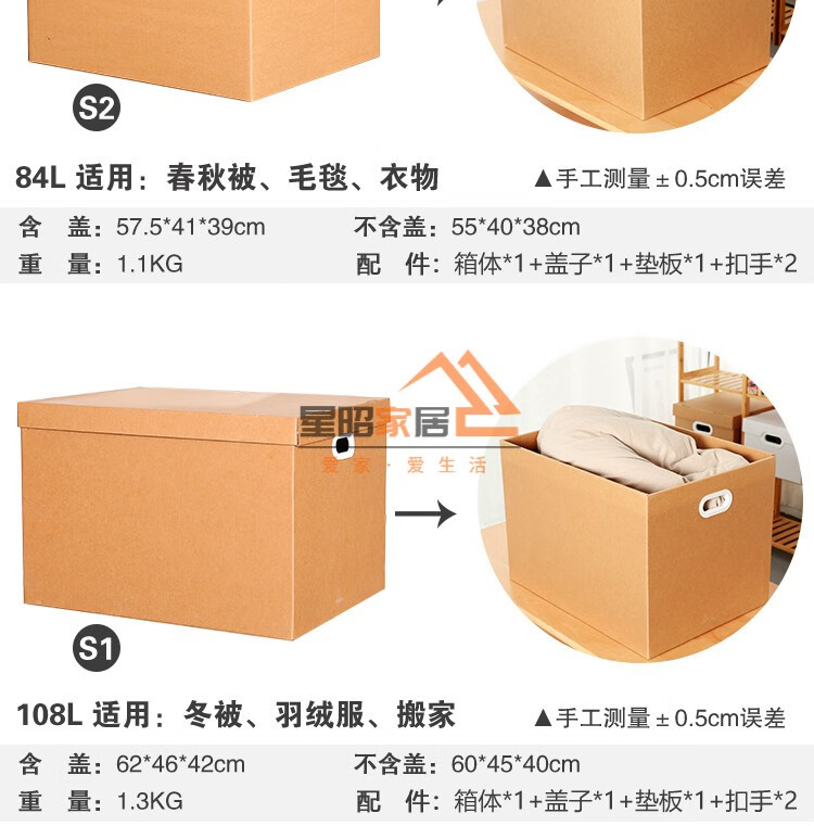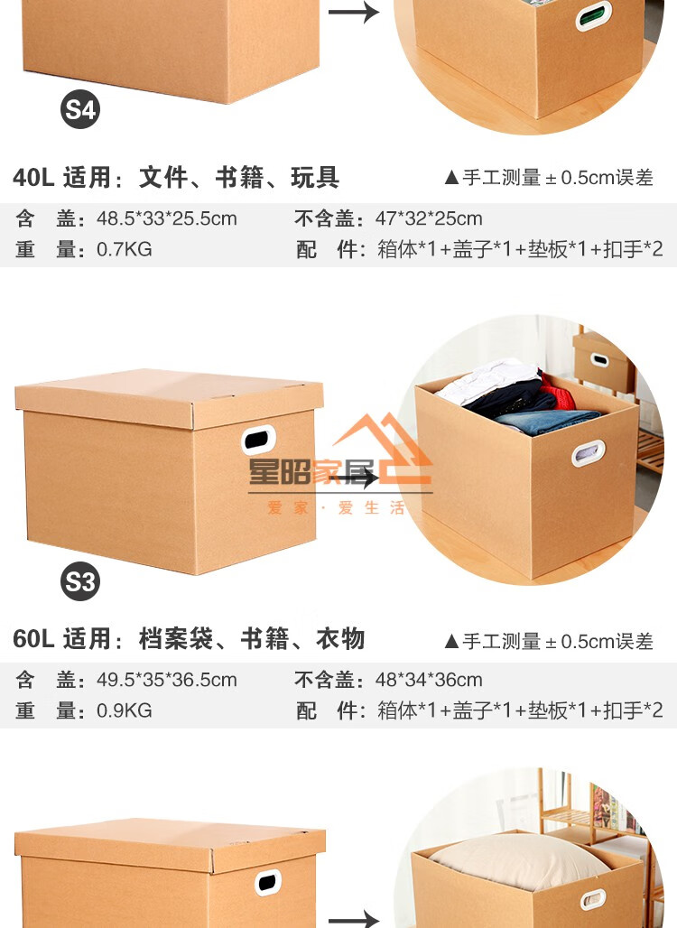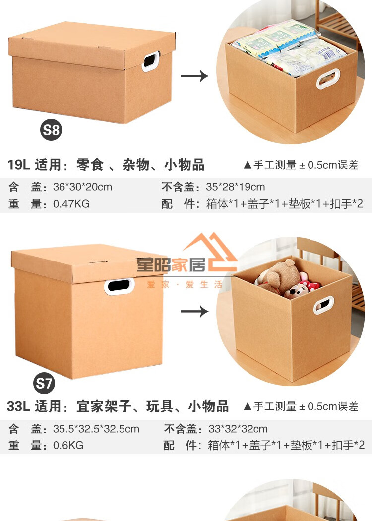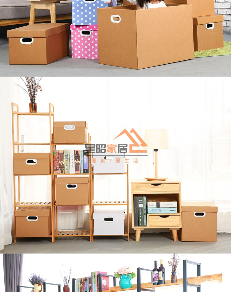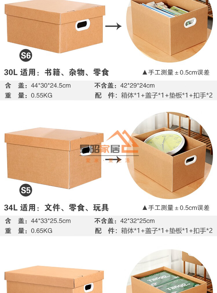 JPHZNB paper box kraft paper snack storage box book clothes document storage box covered moving finishing paper box S7 333232cm