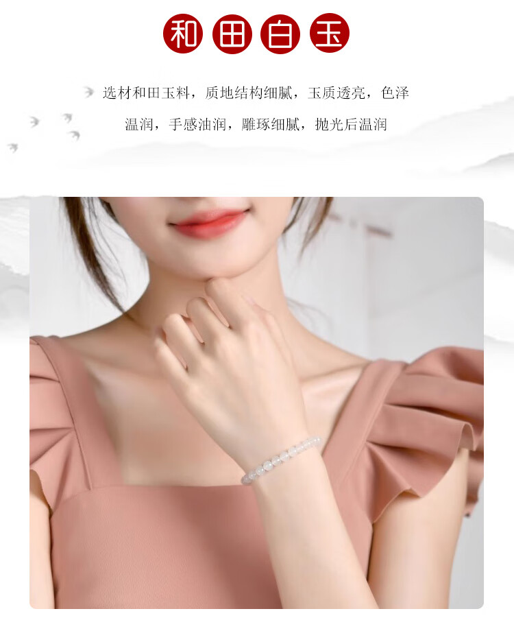 Lingjiujiu Hetian jade white jade loose bead bracelet jade bead bracelet with beads diy single bead bead accessories separated beads round beads 1 round bead 6mm