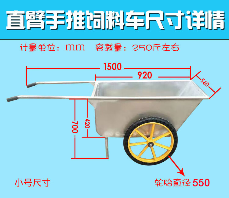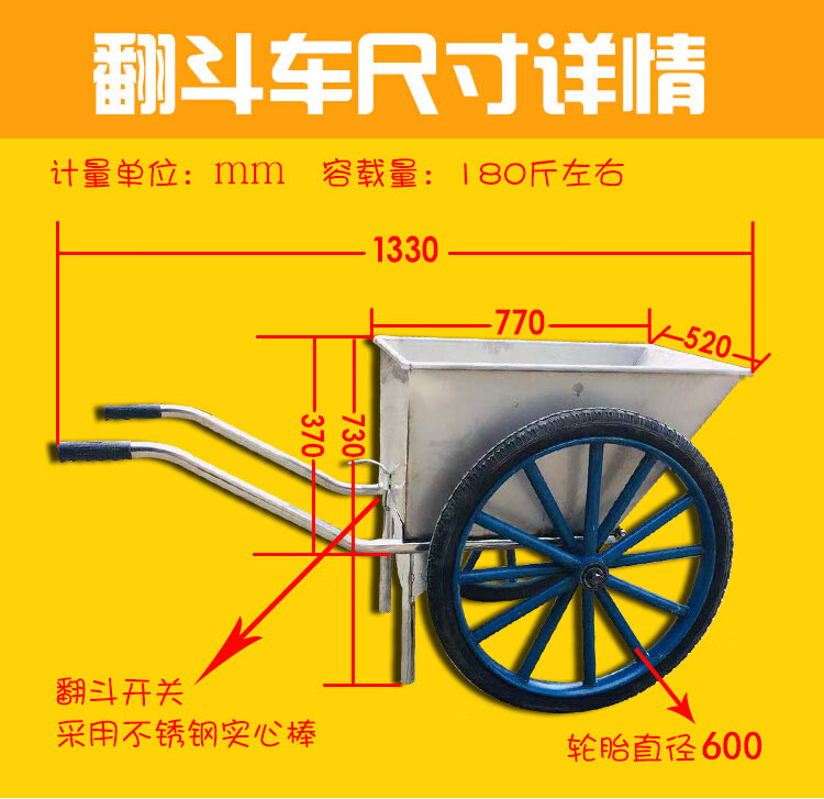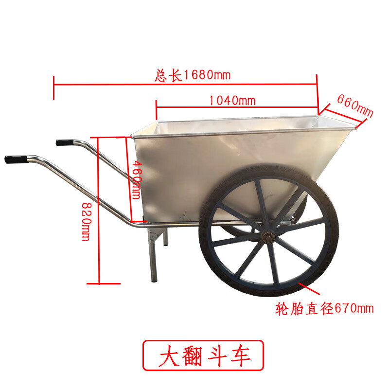 Stainless steel bucket truck dump truck feed cart feed cart farm push cart feed cart construction site grain bucket truck thickened stainless steel 250Jin Jin equals 0.5 kg bucket truck