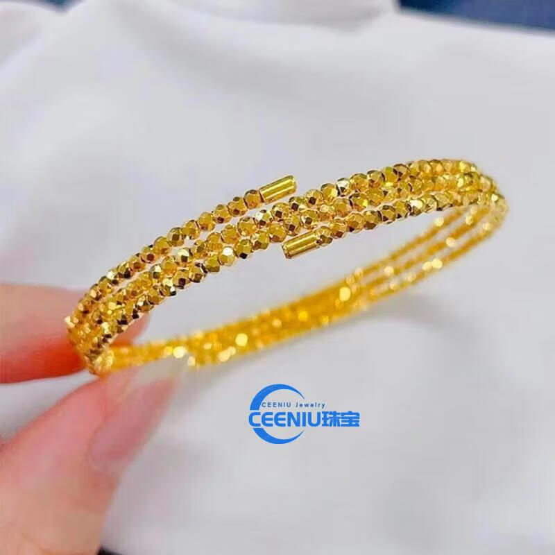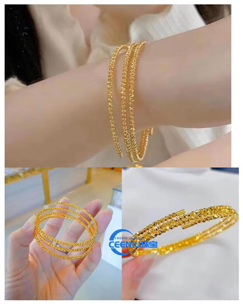CEENIU 18K gold bouncy bead 18K gold three-circle memory elastic explosive flashing broken gold transfer beads new style three lives three worlds flashing bouncy bead bracelet