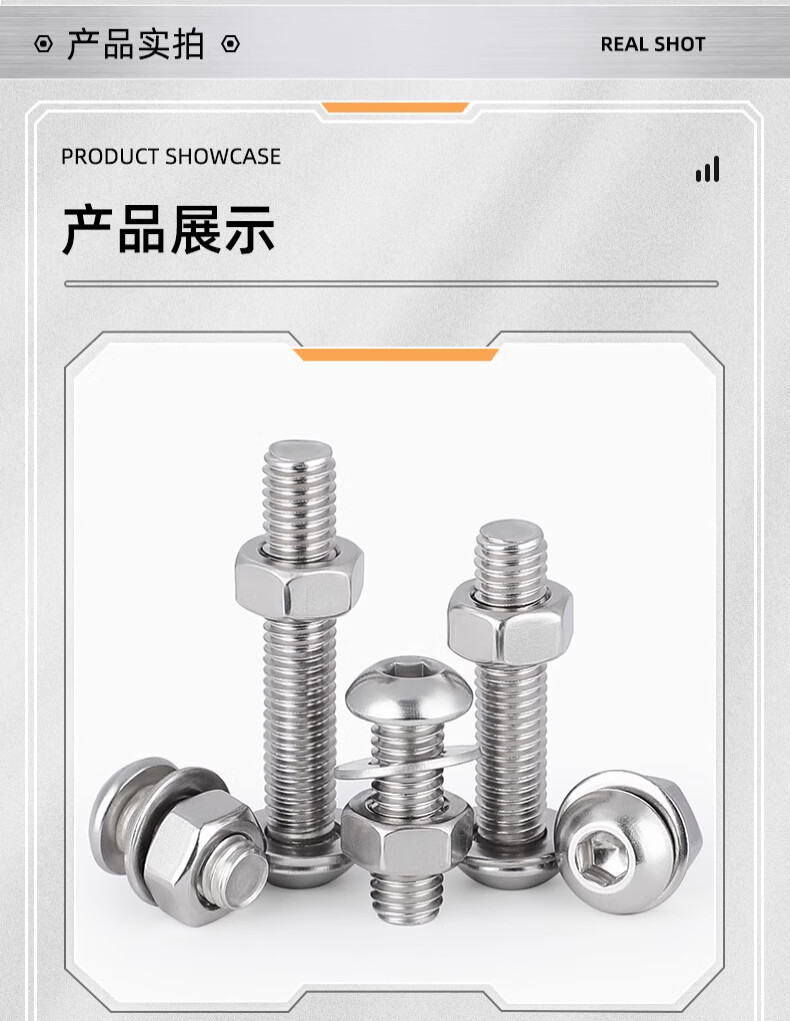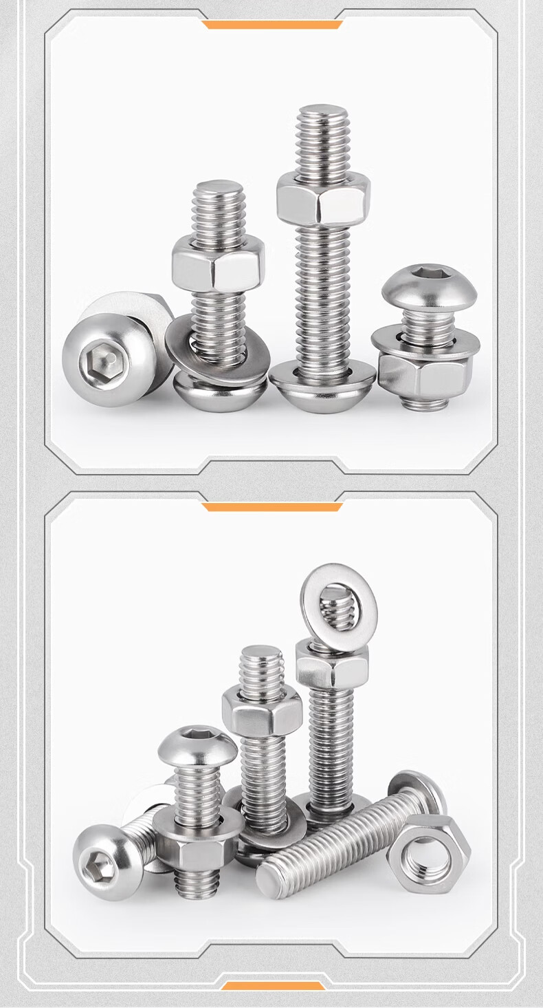Tianzhuo Hardware M1.6-M16 304 stainless steel round head/pan head hexagonal screw nut combination set MM3M4M5M6 M3*25-50 set