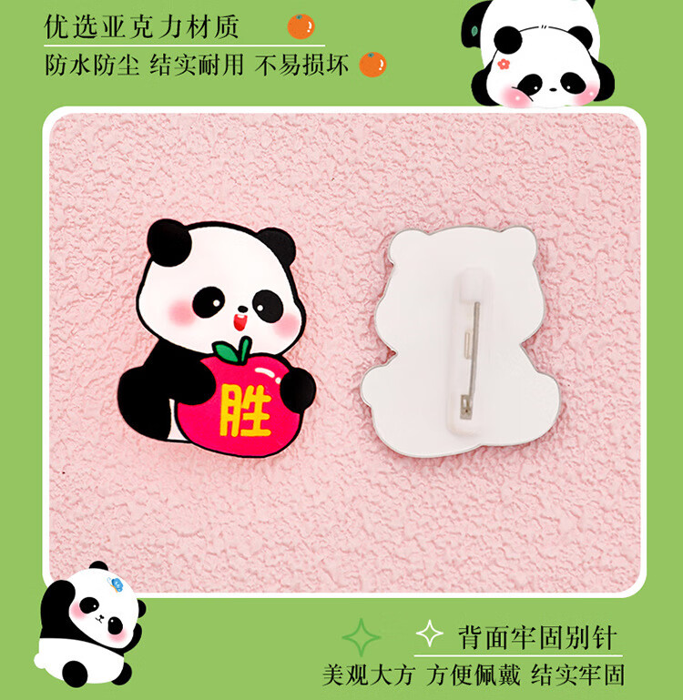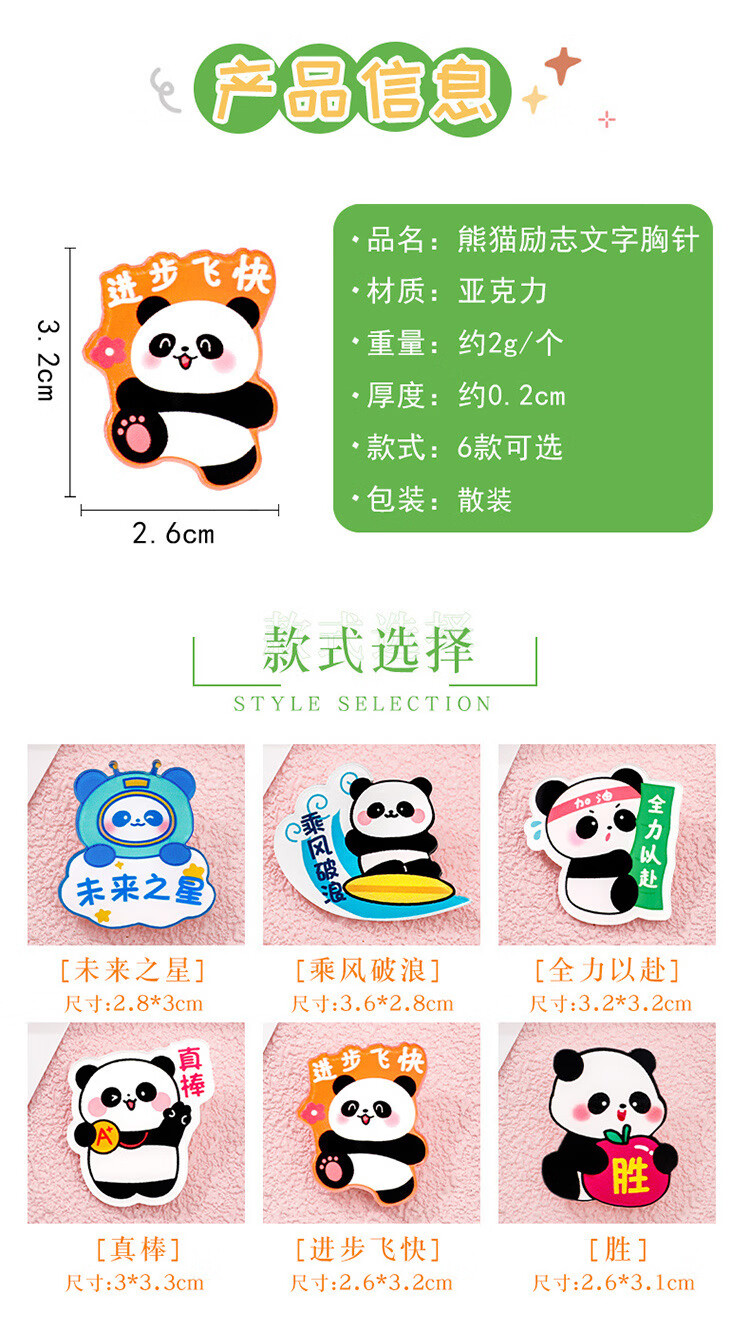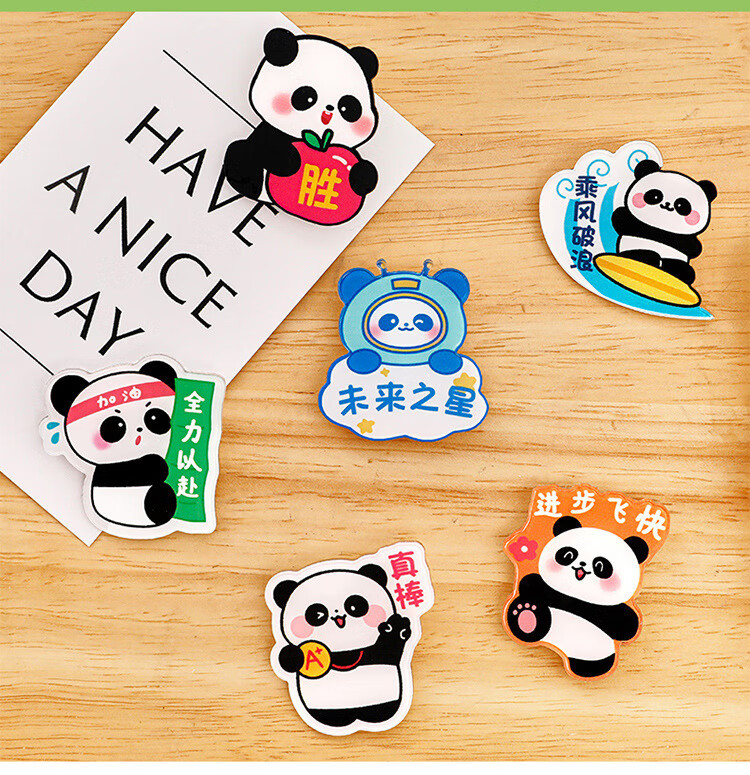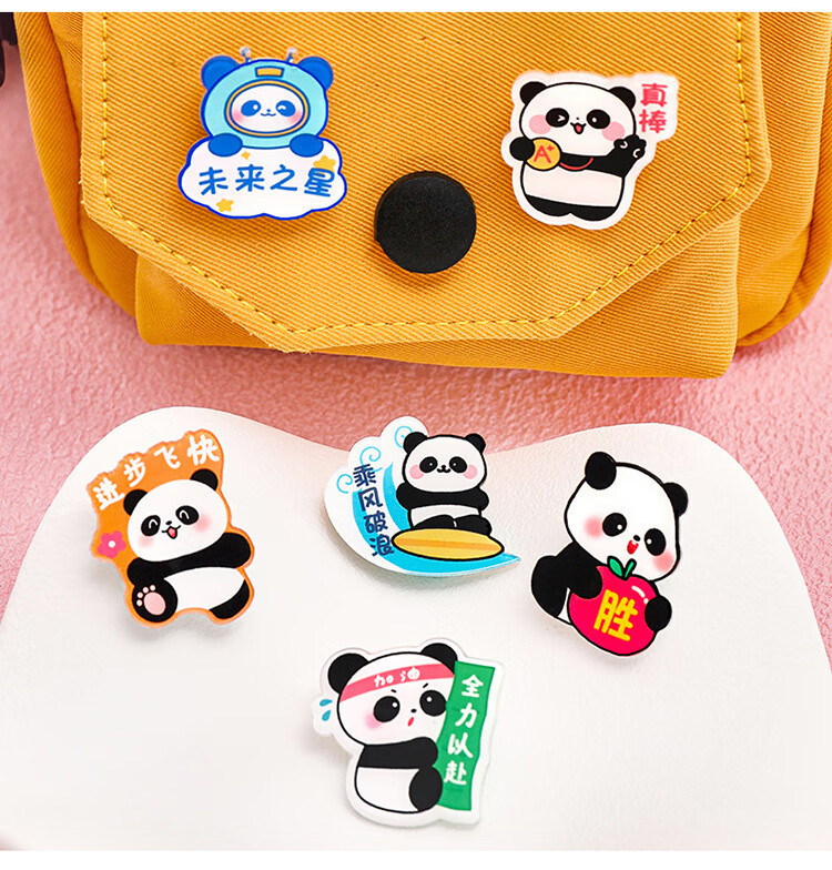 Dai Yan Inspirational Text Panda Brooch Cartoon Children's National Trend Badge School Bag Decoration Cute Chinese Style Acrylic Badge Panda Brooch 6 Pack