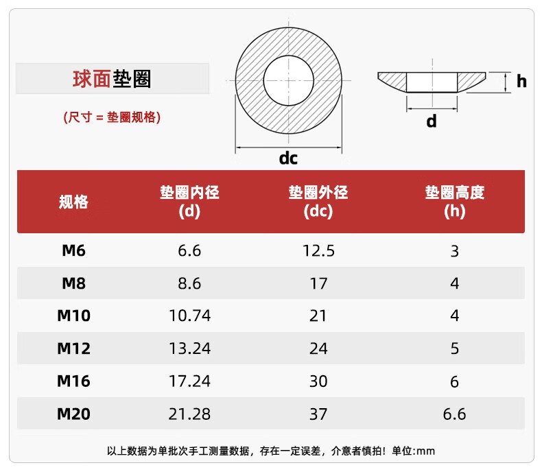 Tianzhuo Hardware 304 stainless steel GB850 cone washer/GB849 spherical washer/concave convex gasket M6M8M10M12 M48 (spherical + conical) 1 set 304